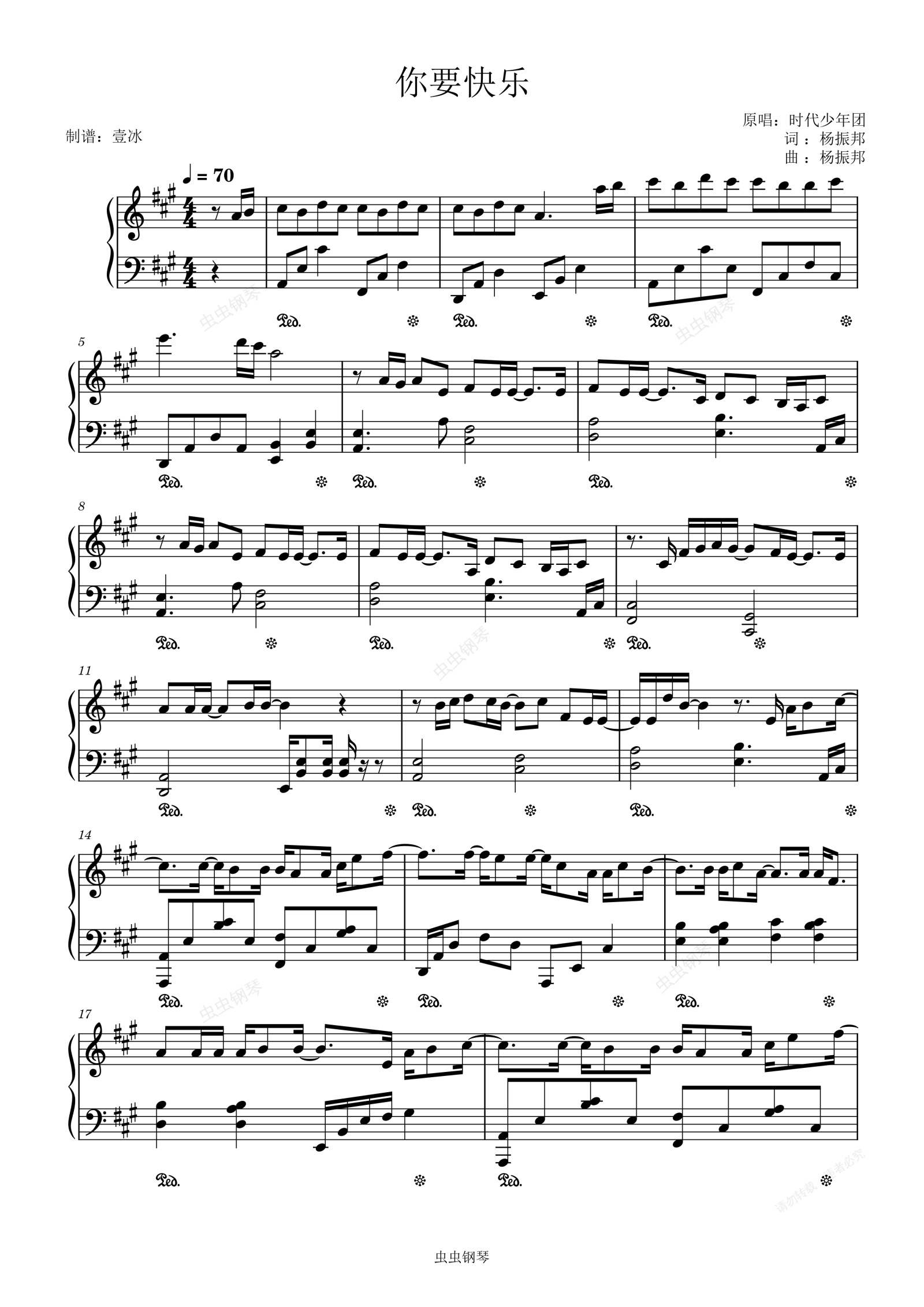 钢琴谱:你要快乐//时代少年团-原调版