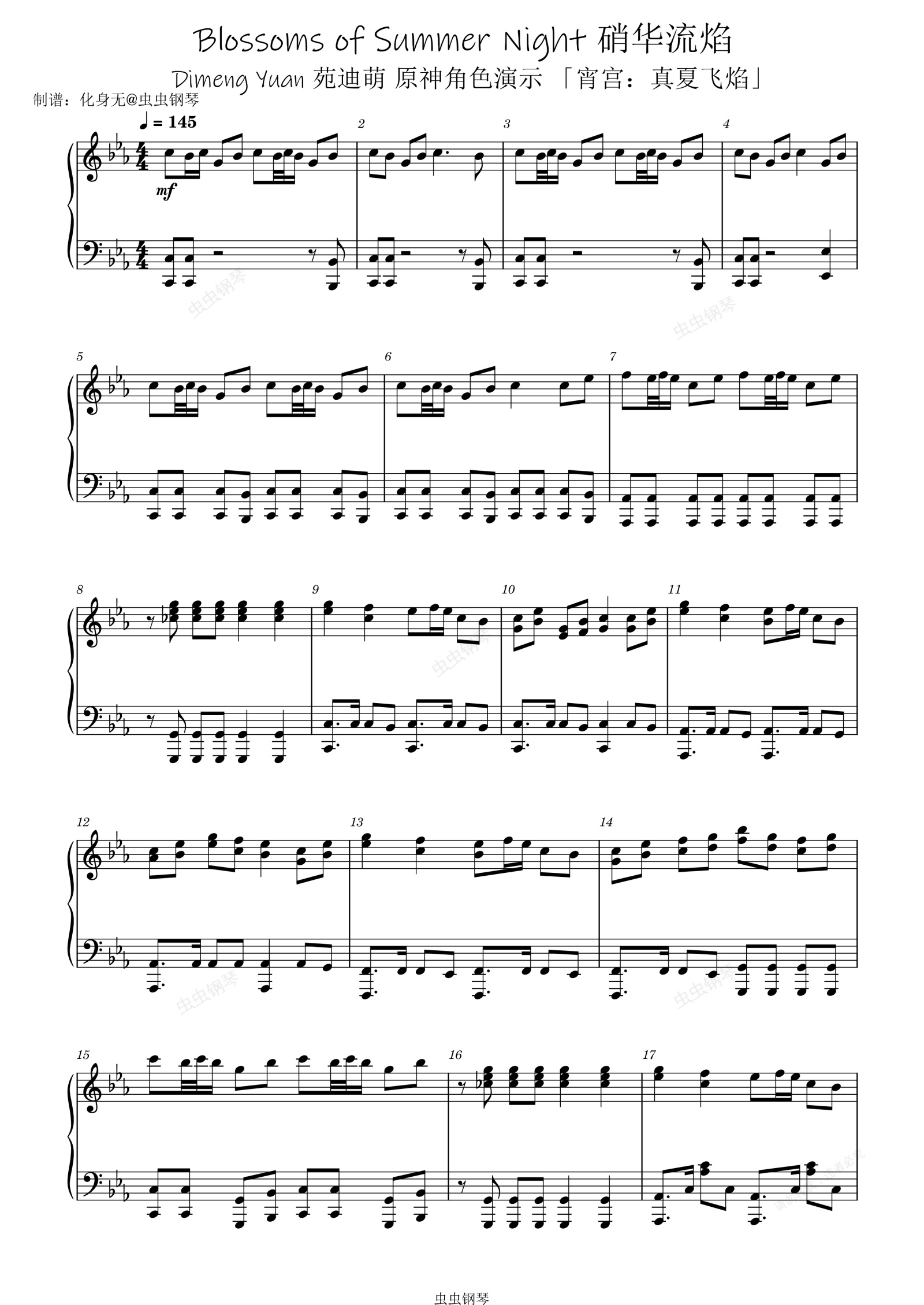 钢琴谱:硝华流焰 原神角色演示 宵宫:真夏飞焰 Blossoms of Summer Night