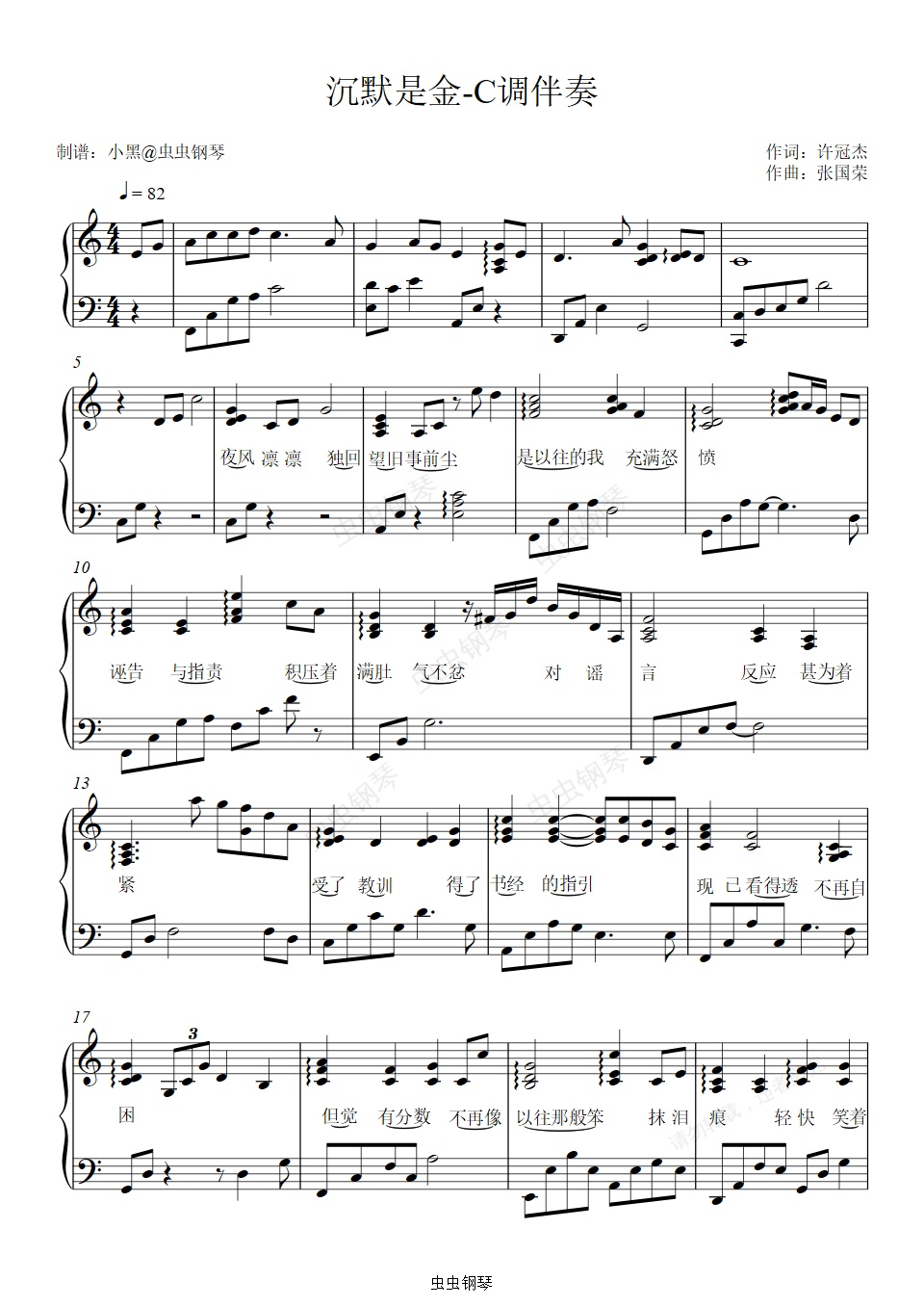 钢琴谱:沉默是金—C调弹唱伴奏版