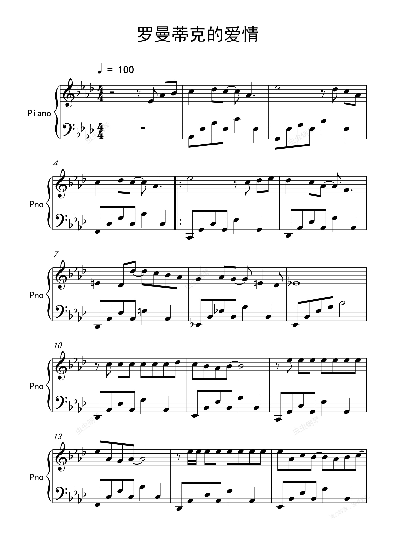 钢琴谱:罗曼蒂克的爱情- 钢琴 贺敬轩