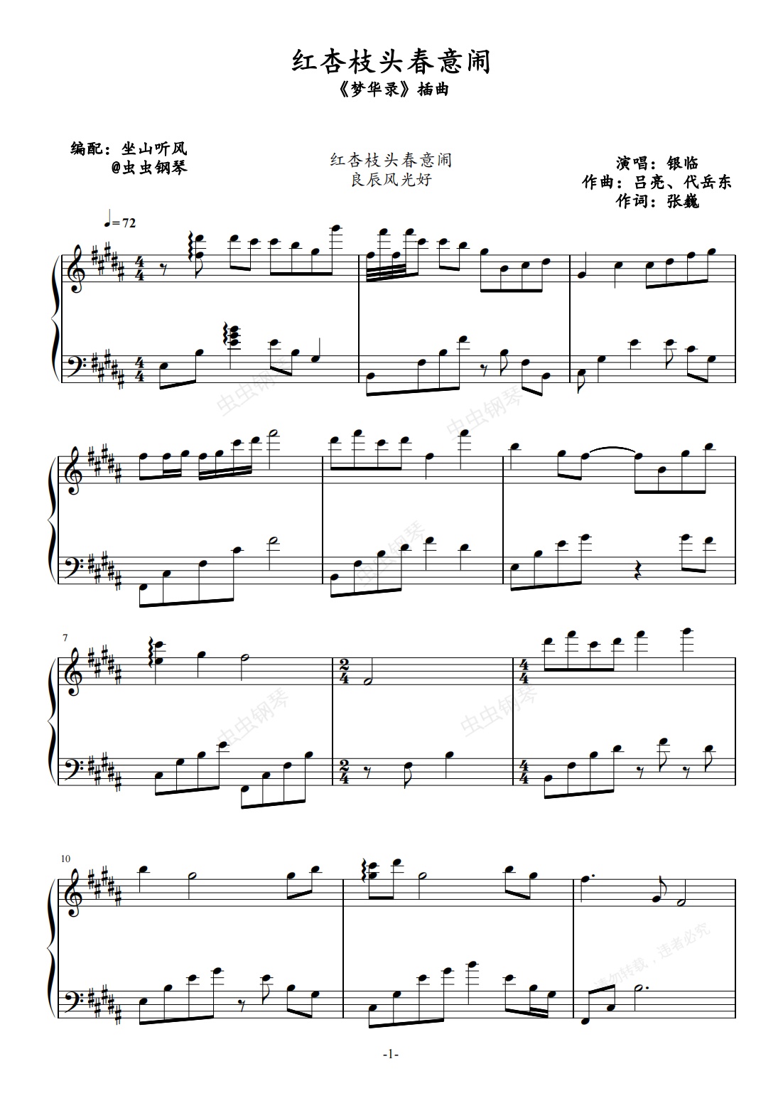 钢琴谱:红杏枝头春意闹——《梦华录》插曲