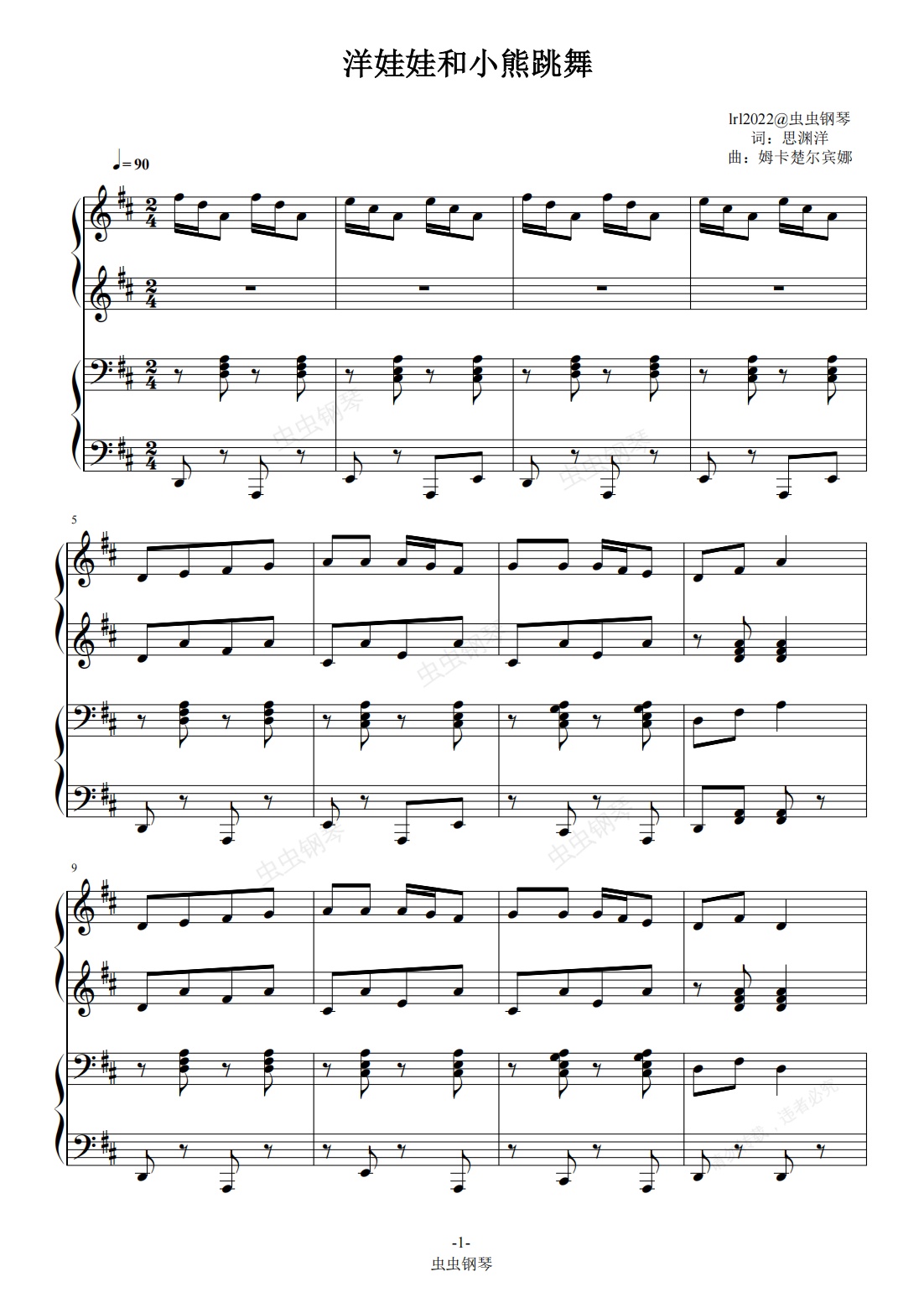 钢琴谱:《洋娃娃和小熊跳舞》-四手联弹-G调-儿歌