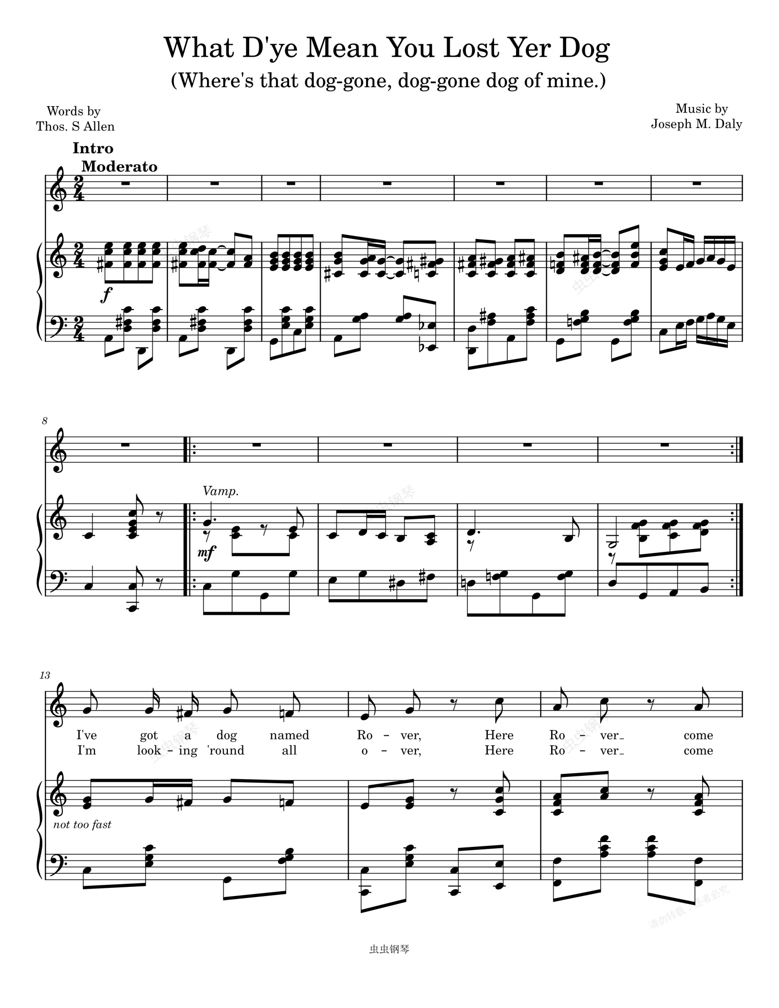 钢琴谱:What D'ye Mean You Lost Yer Dog