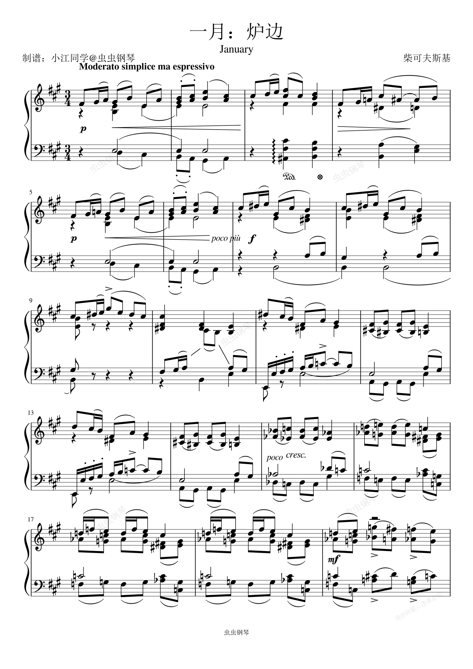 钢琴谱:一月:炉边 January