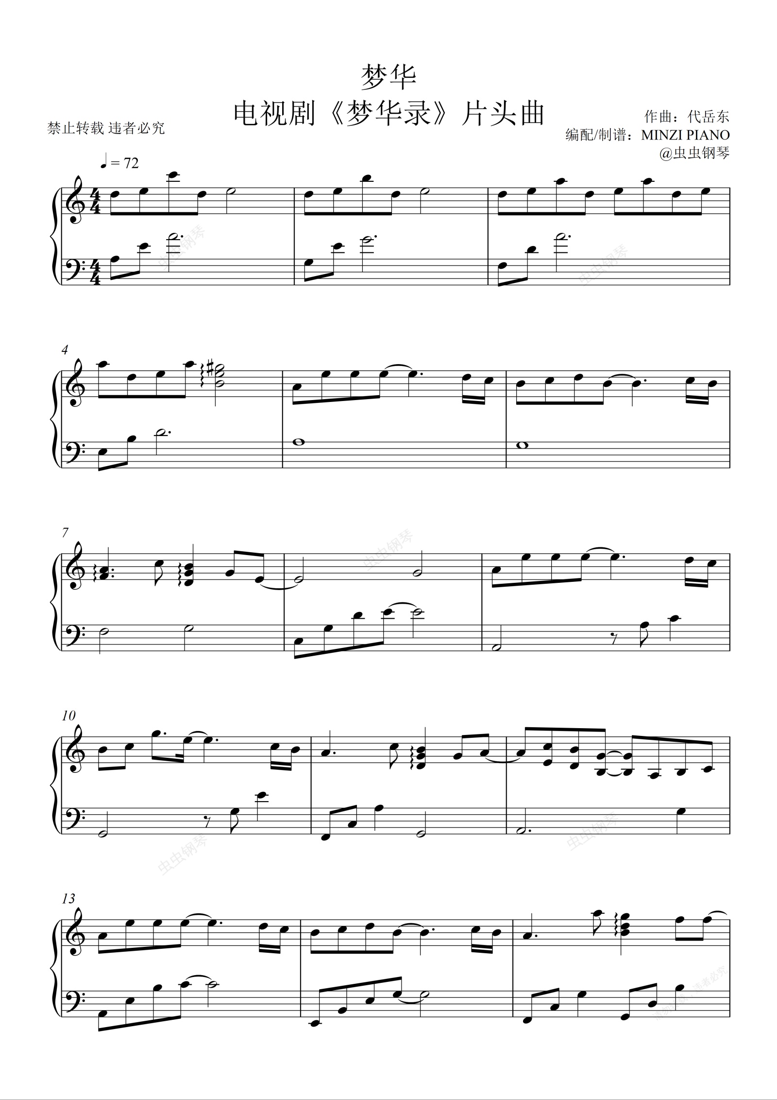 钢琴谱:刘宇宁《梦华》梦华录片头曲