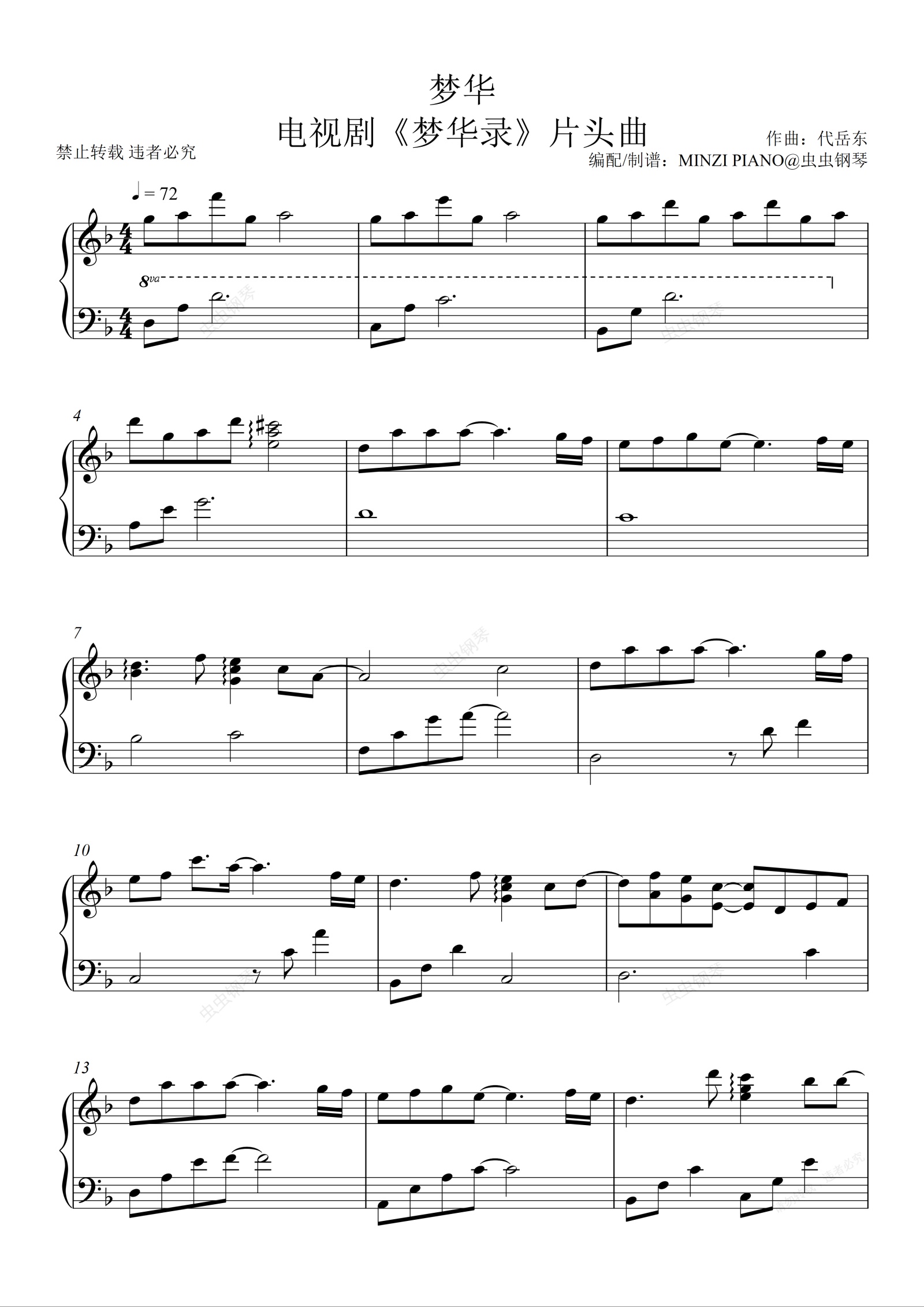 钢琴谱:《梦华》电视剧《梦华录》片头曲