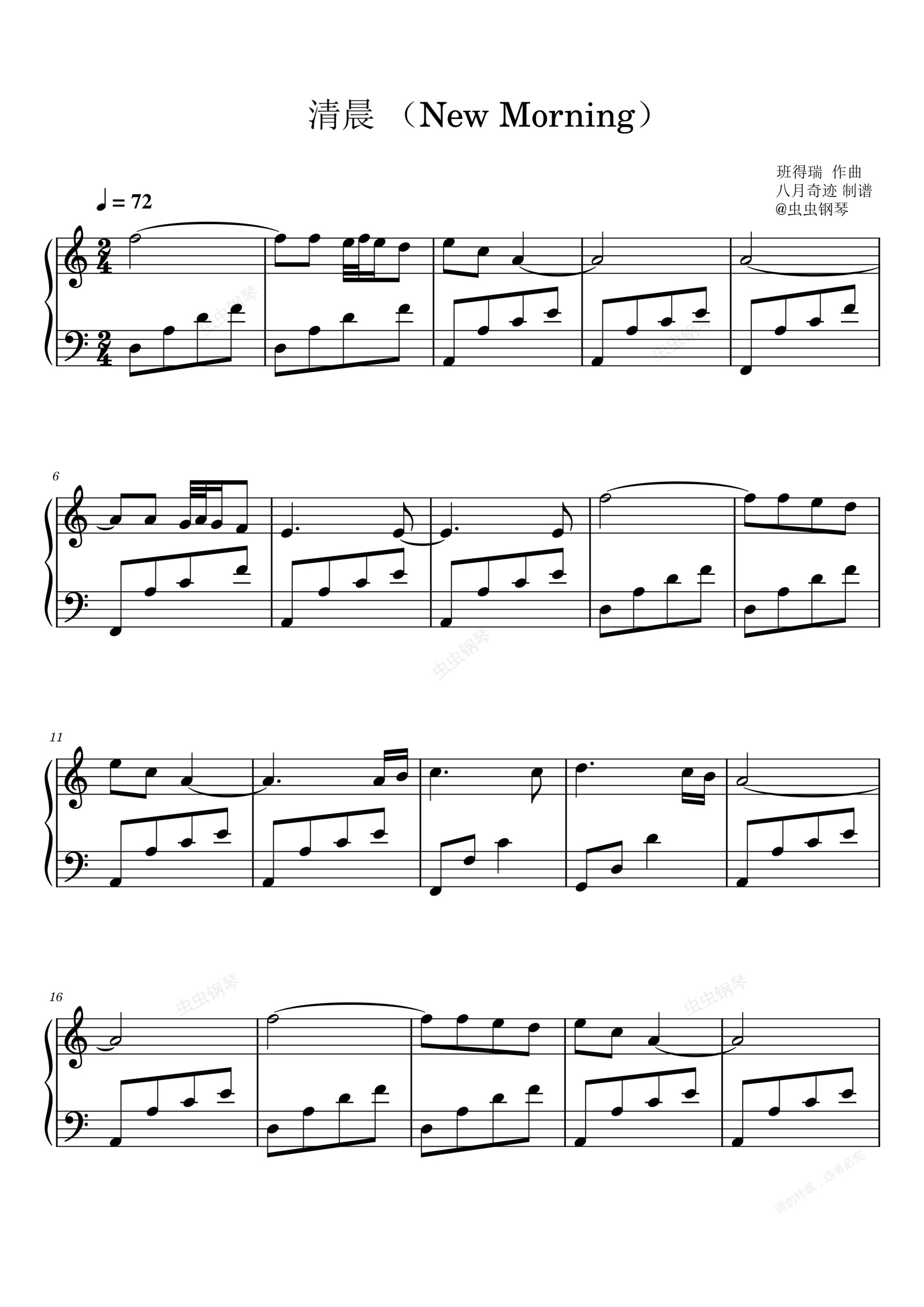 钢琴谱:班得瑞 清晨(New Morning)完美还原版