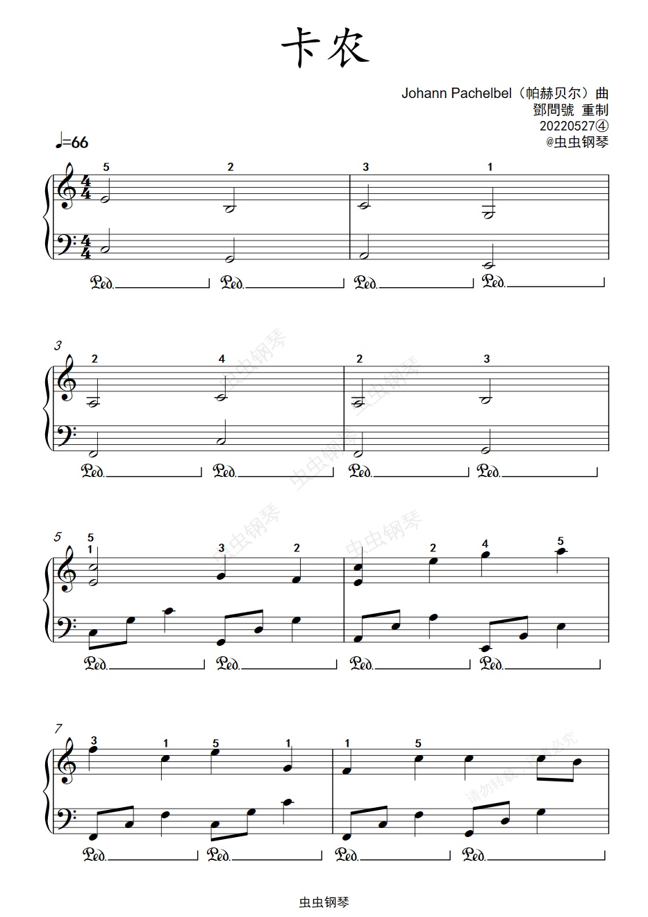 钢琴谱:《卡农》C大调精简版