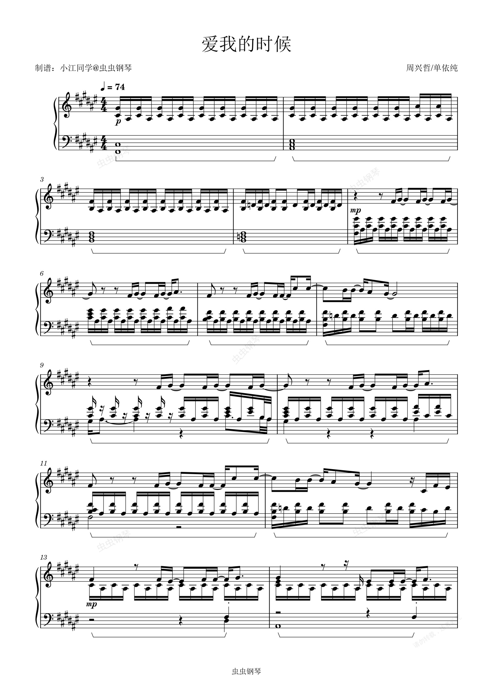 钢琴谱:爱我的时候 周兴哲/单依纯