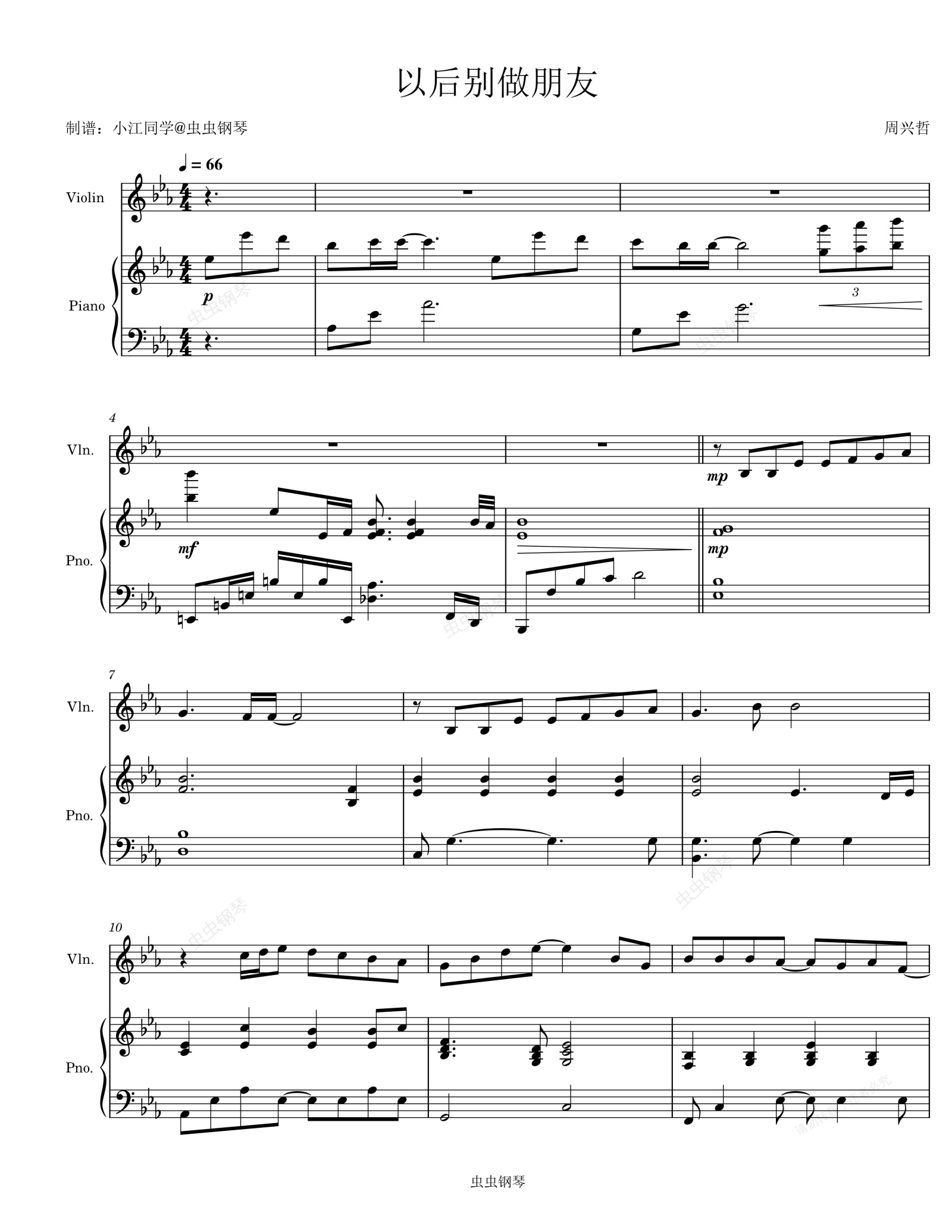 钢琴谱:以后别做朋友 周兴哲