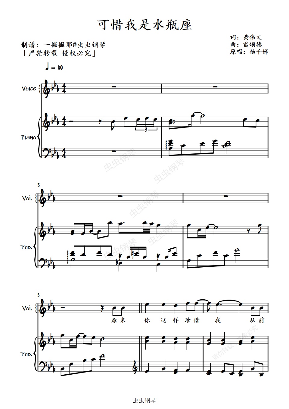 钢琴谱:【完美弹唱】可惜我是水瓶座-杨千嬅「一撇撇耶」