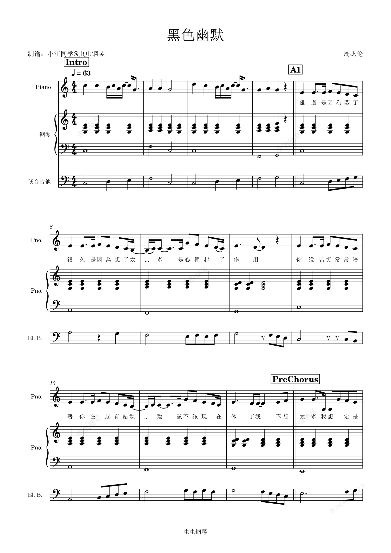 钢琴谱:黑色幽默 弹唱 周杰伦