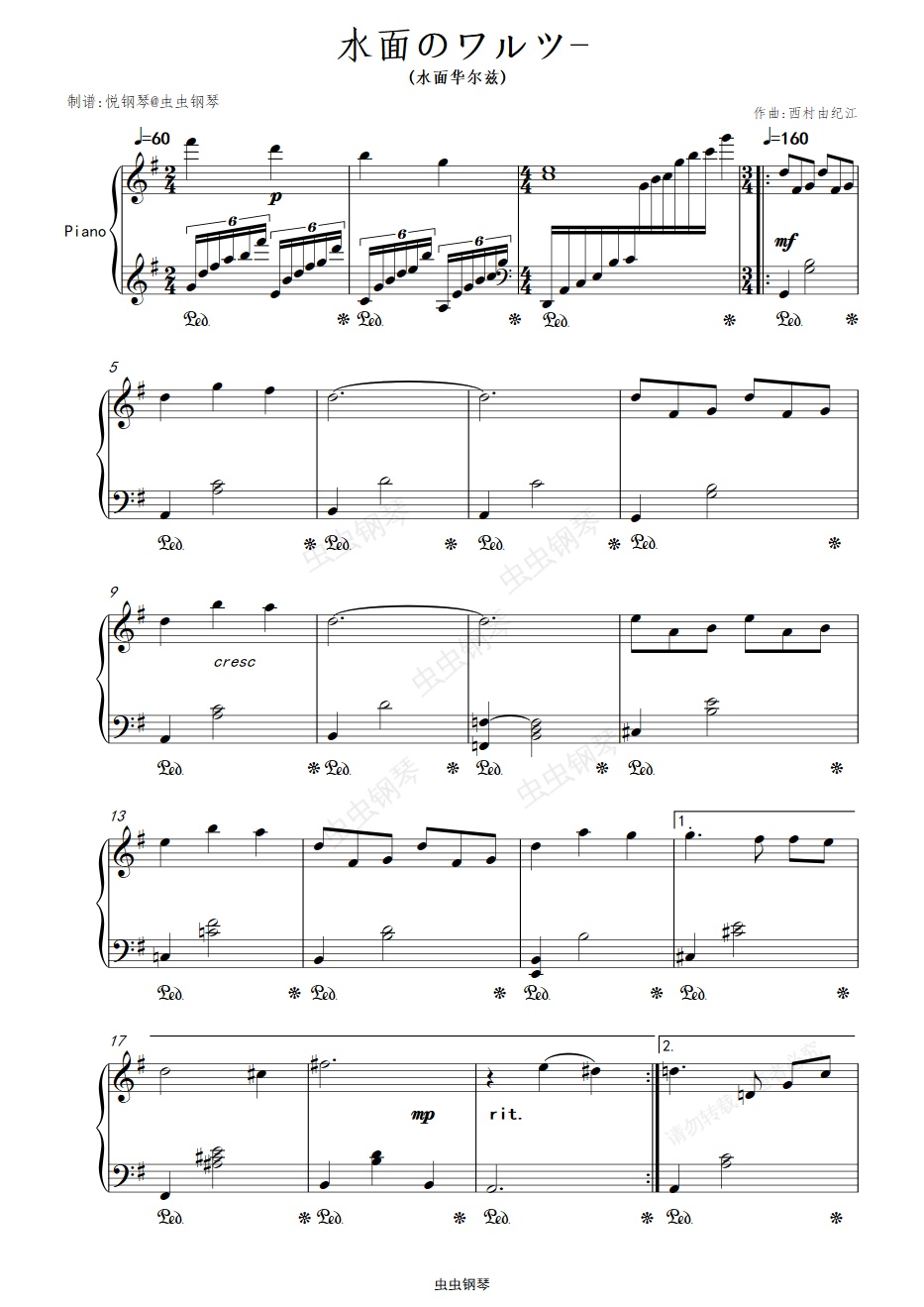 钢琴谱:水面のワルツ (水面华尔兹)官方原版 西村由纪江