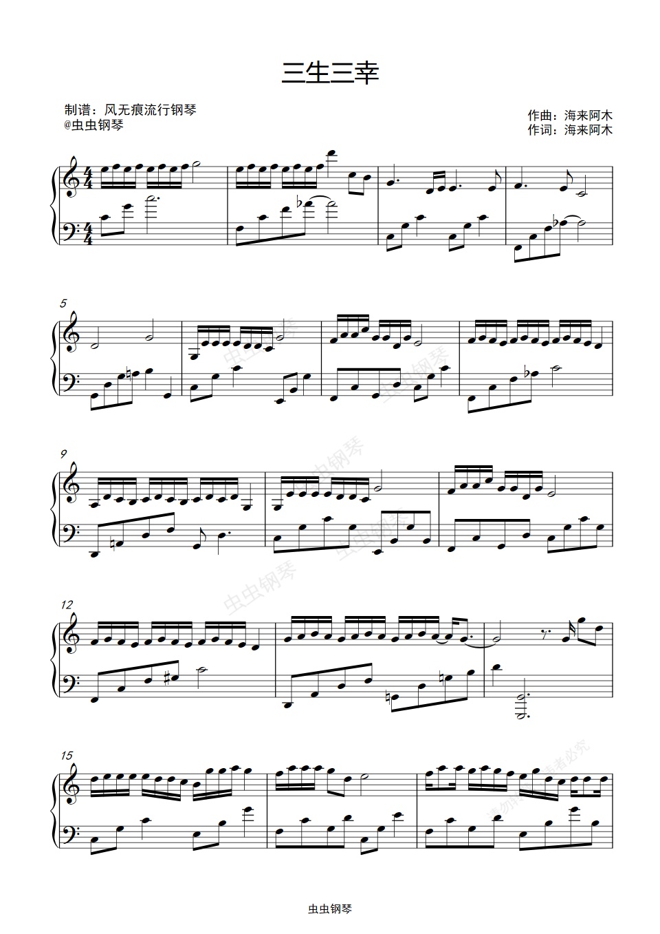 钢琴谱:C调-三生三幸-海来阿木