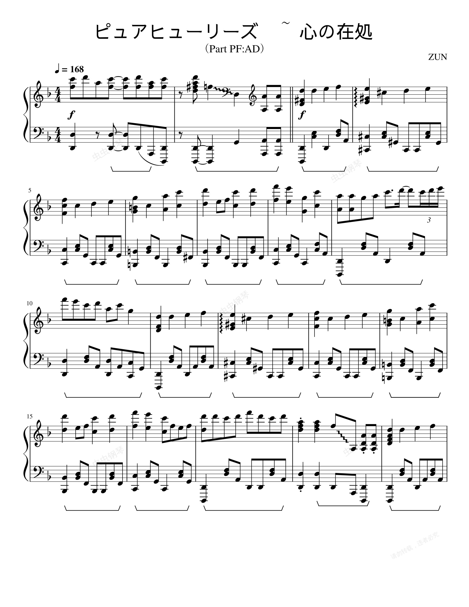 钢琴谱:【东方绀珠传】Pure Furies ~ 心之所在