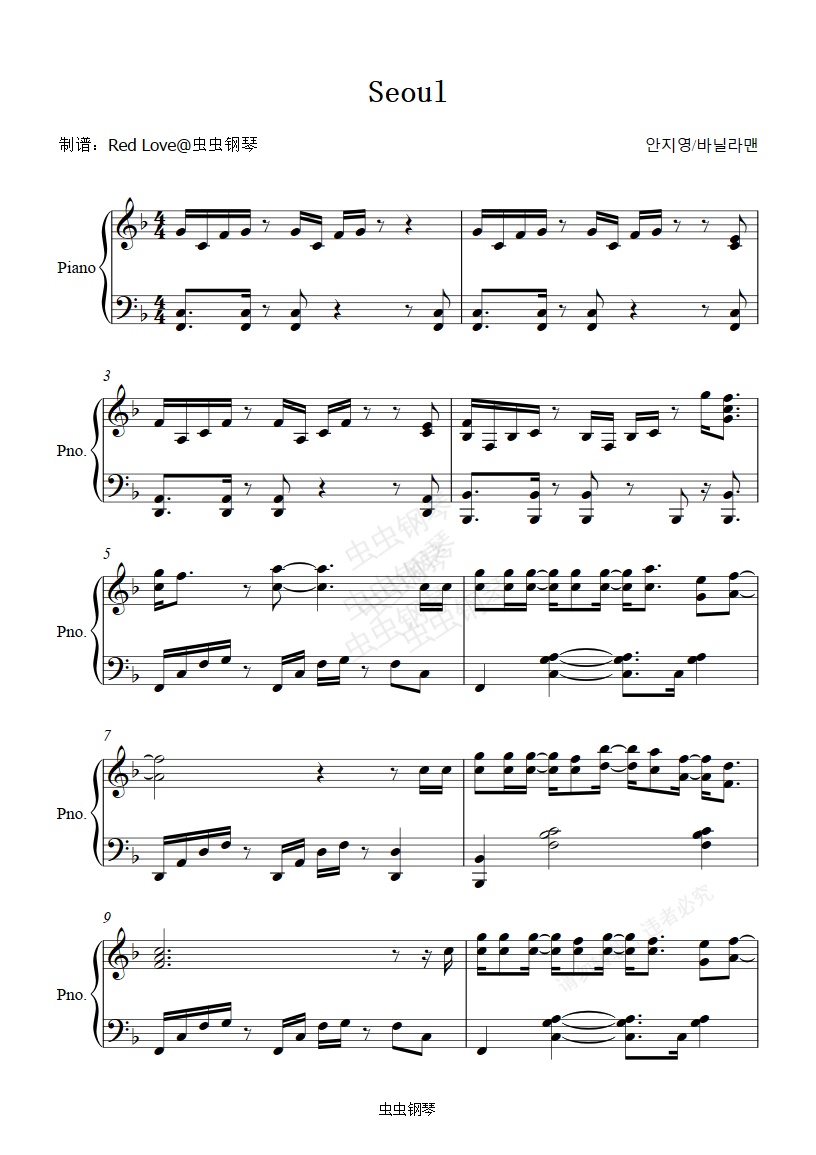 钢琴谱:《Seoul》BOL4 脸红的思春期 #虫钢我要上开屏