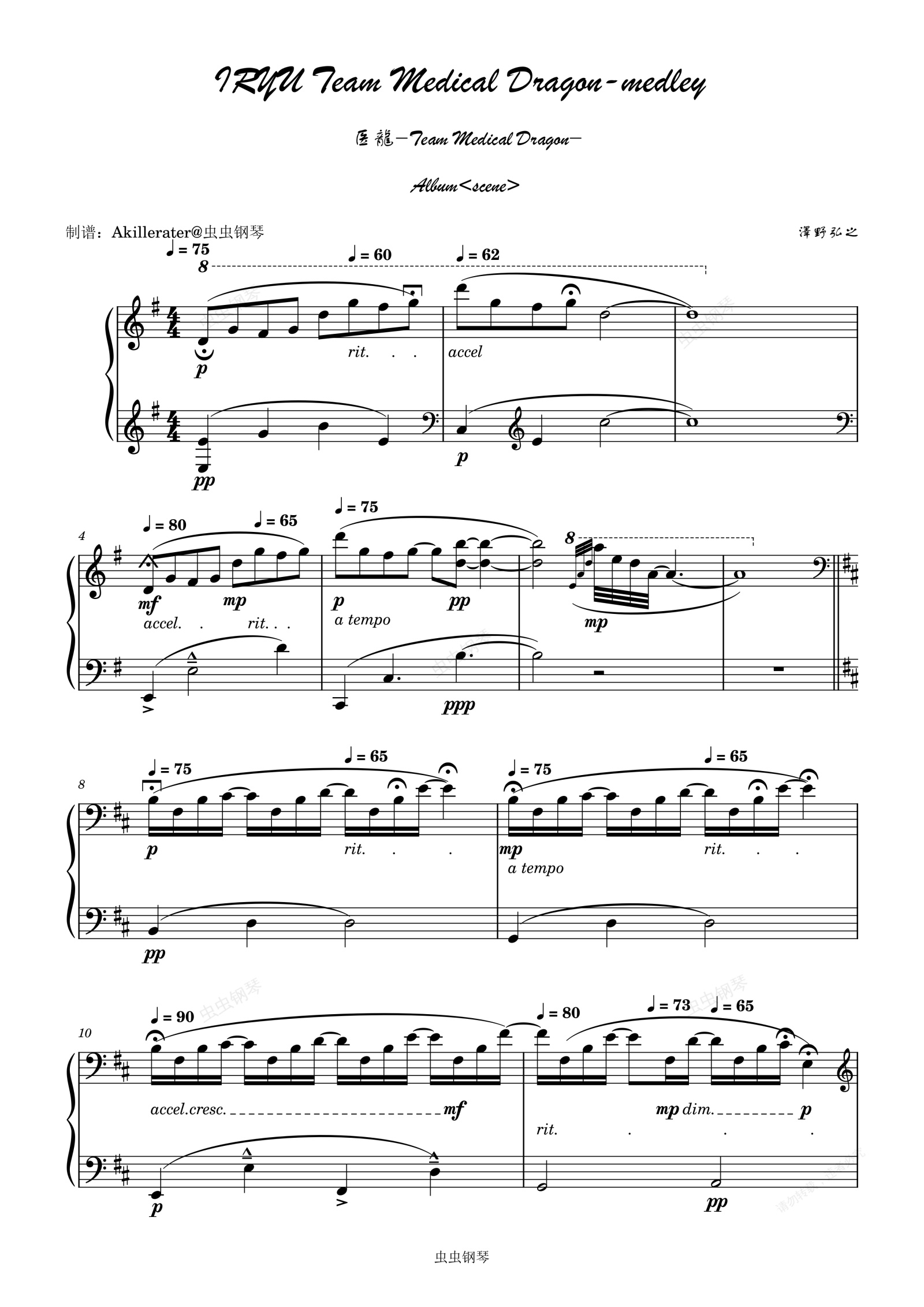 钢琴谱:IRYU Team Medical Dragon-medley(《医龙》泽野弘之scene专辑钢琴版)