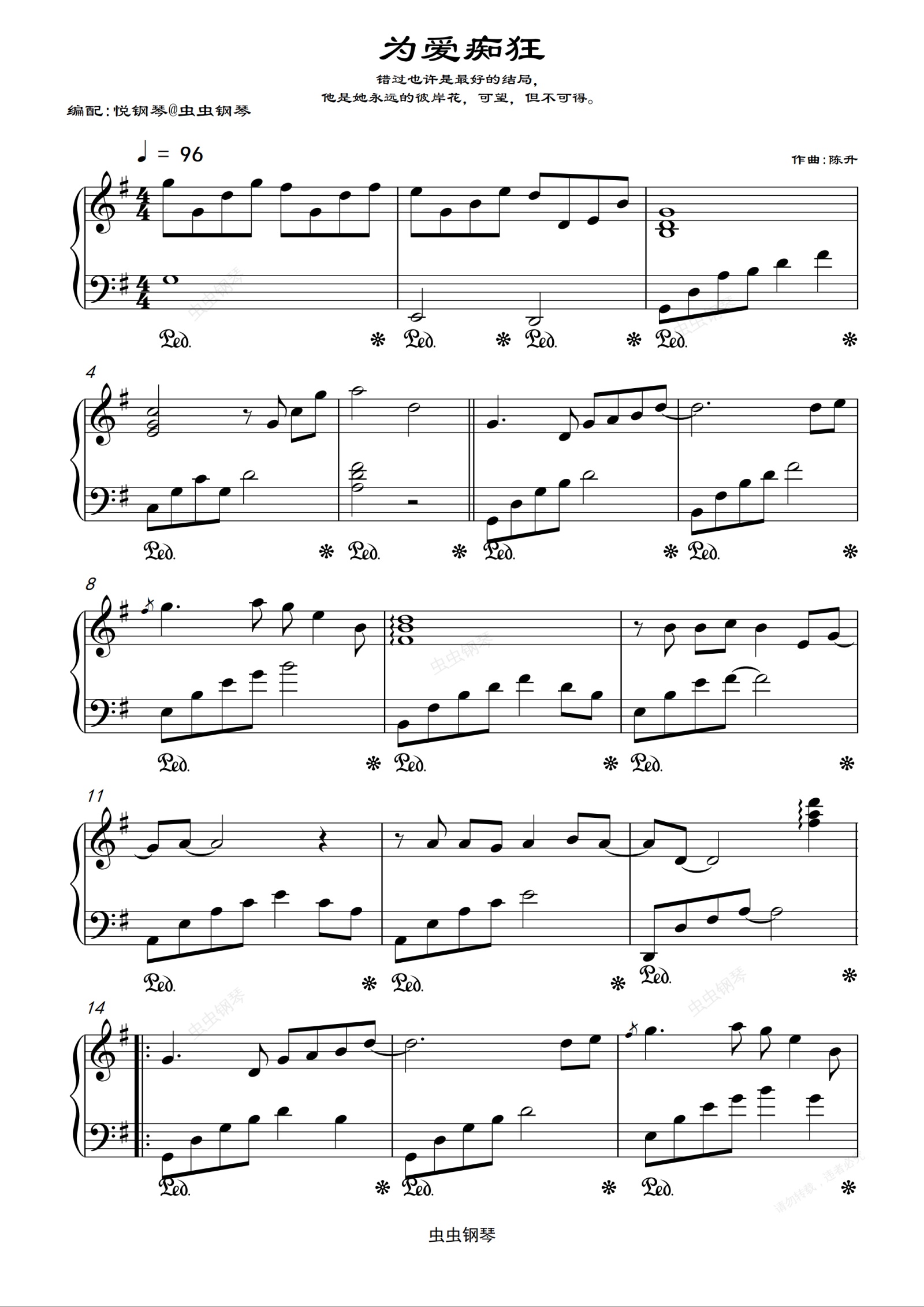 钢琴谱:为爱痴狂(G调版) 刘若英