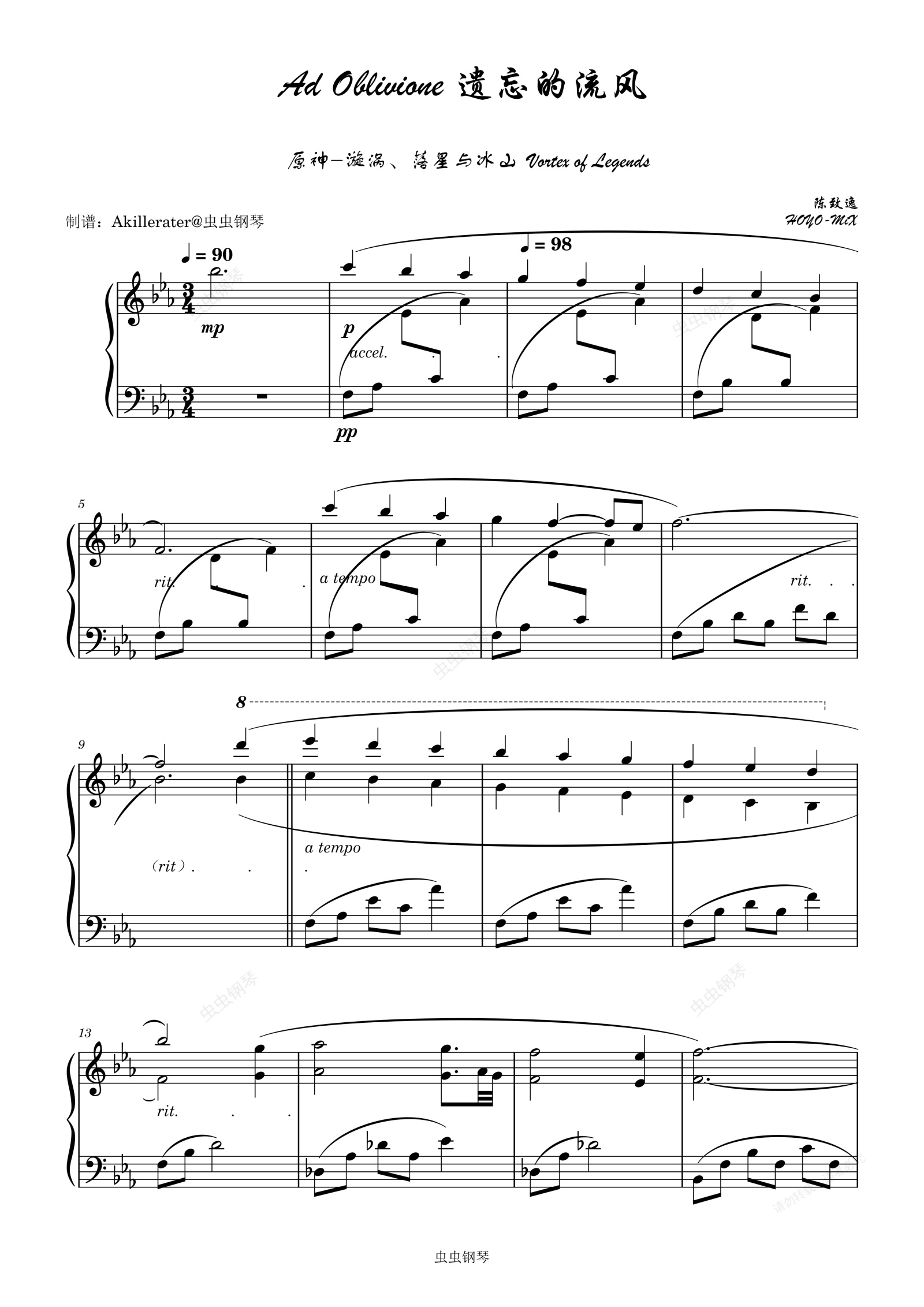 钢琴谱:Ad Oblivione 遗忘的流风《原神-漩涡、落星与冰山 Vortex of Legends》