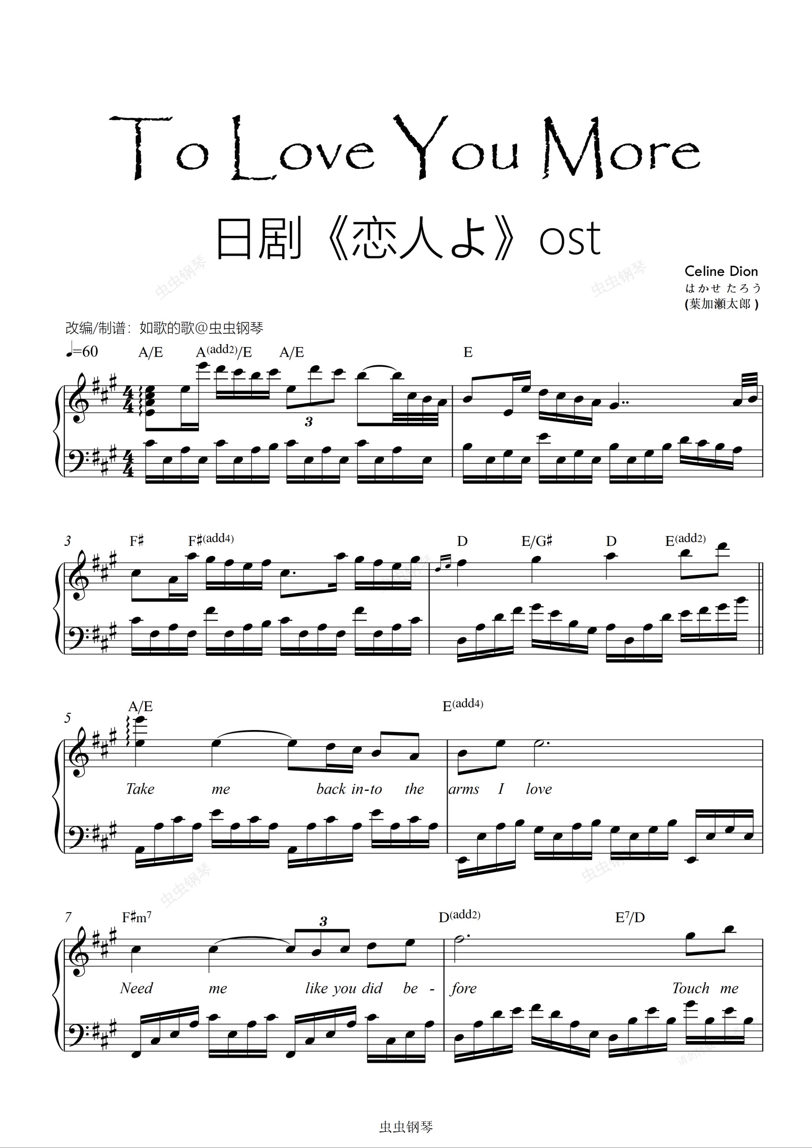 钢琴谱:To Love You More《恋人よ》ost可弹唱