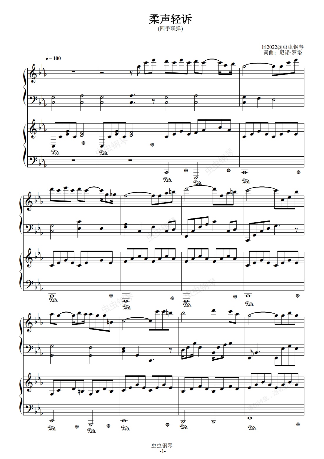 钢琴谱:柔声轻诉-四手联弹-Speak Softly Love-教父主题曲