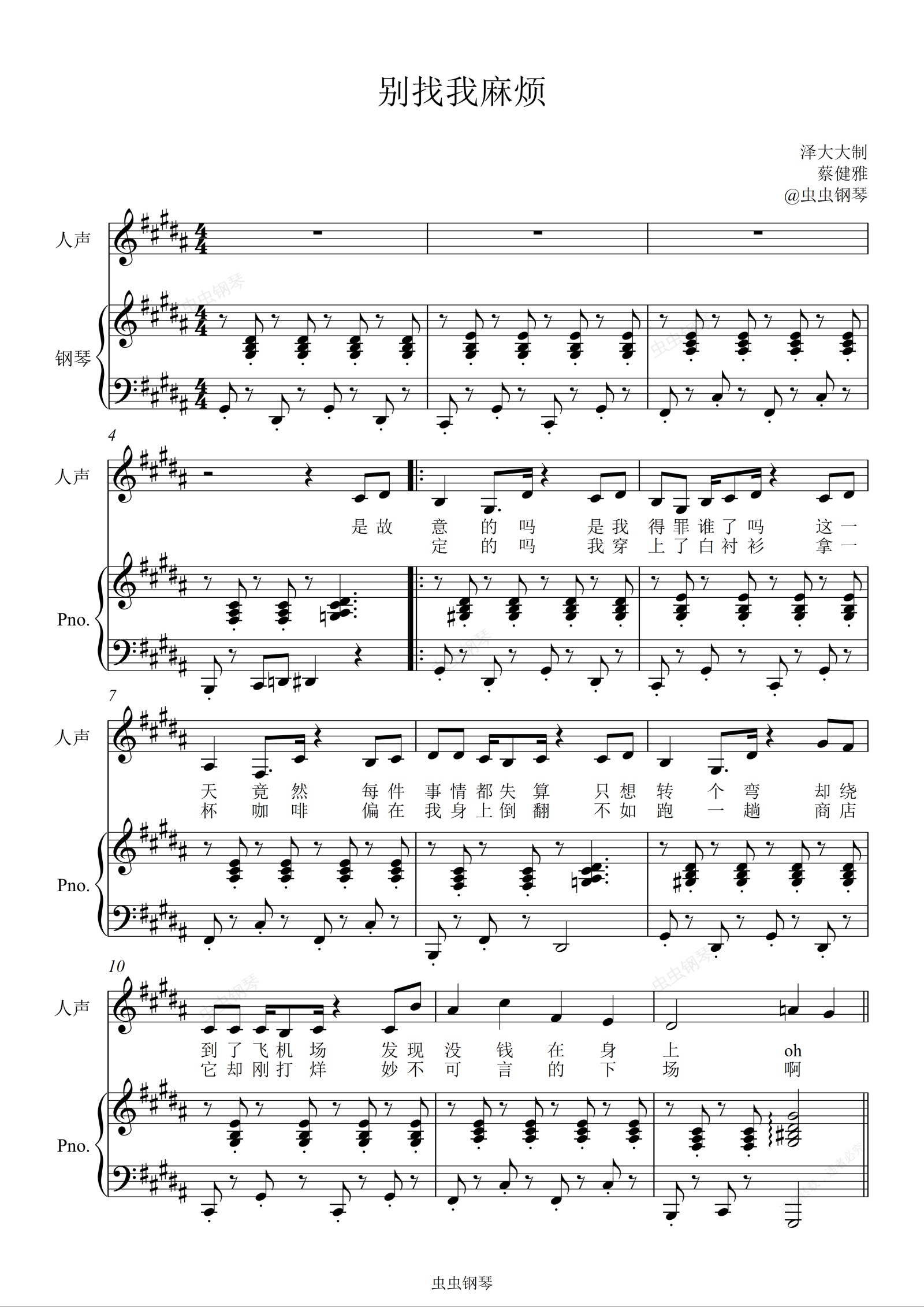 钢琴谱:别找我麻烦【原版弹唱附词】泽大大 蔡健雅