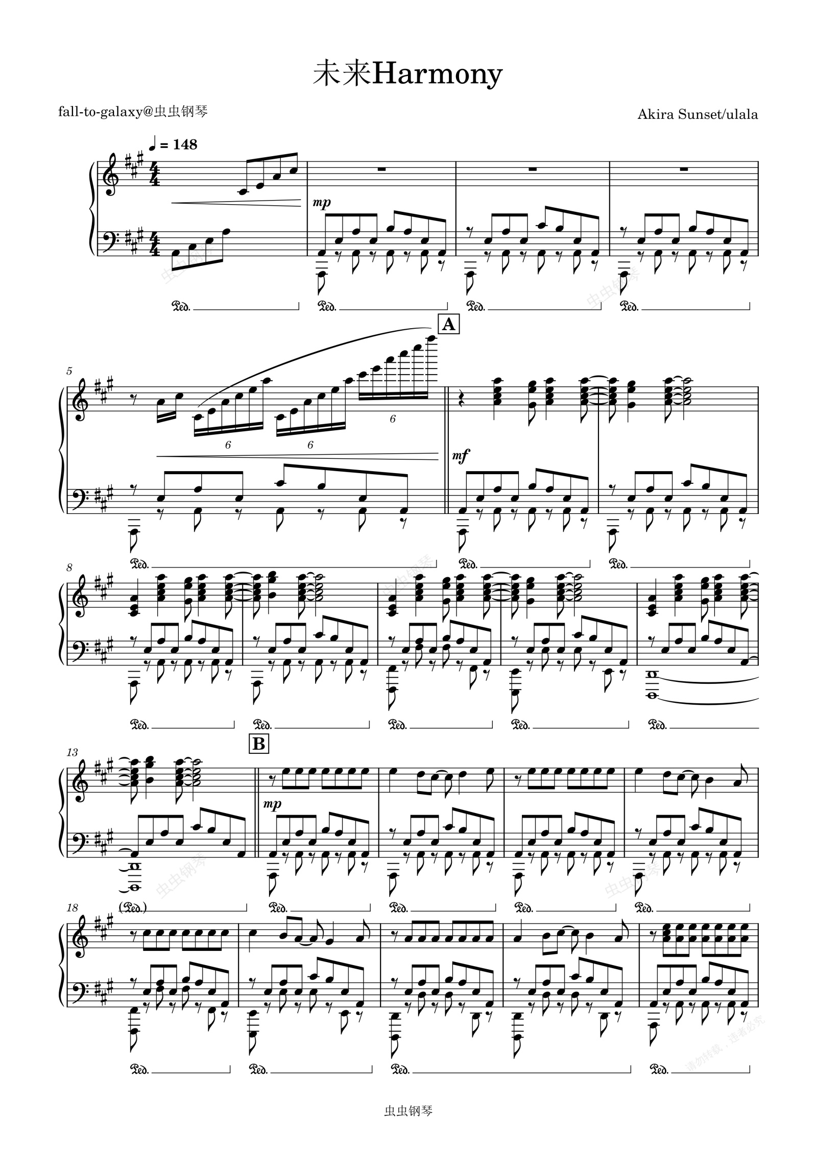 钢琴谱:【钢琴改编】虹咲学院学院偶像同好会 - 未来ハーモニー