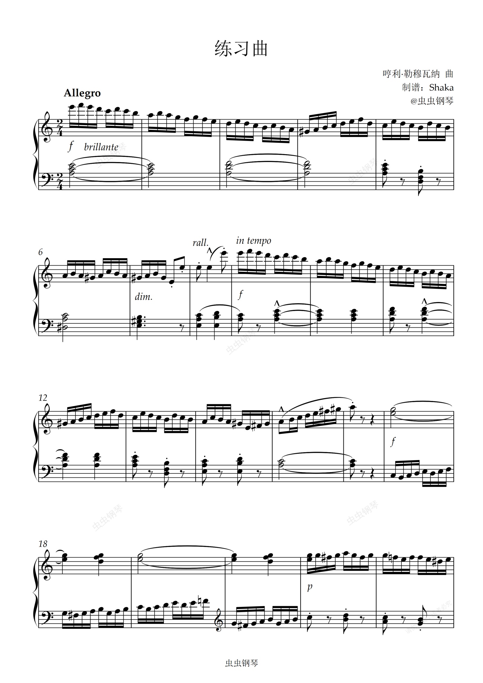 钢琴谱:练习曲 勒穆瓦纳 a小调版上海音乐学院2020版4级考级曲目