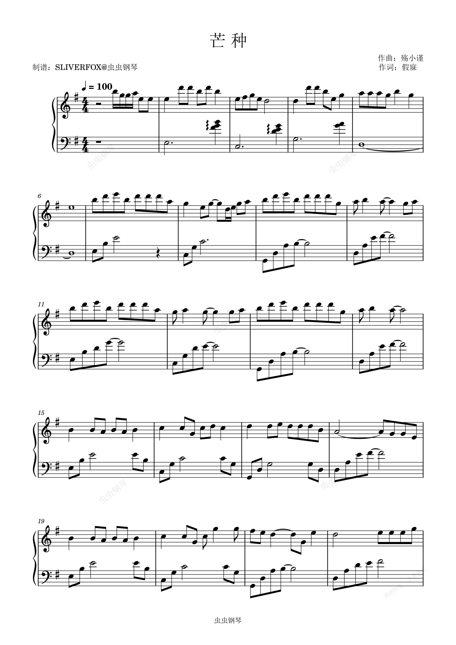 钢琴谱:《芒种》 赵方婧 G调简化钢琴版 流行中国风