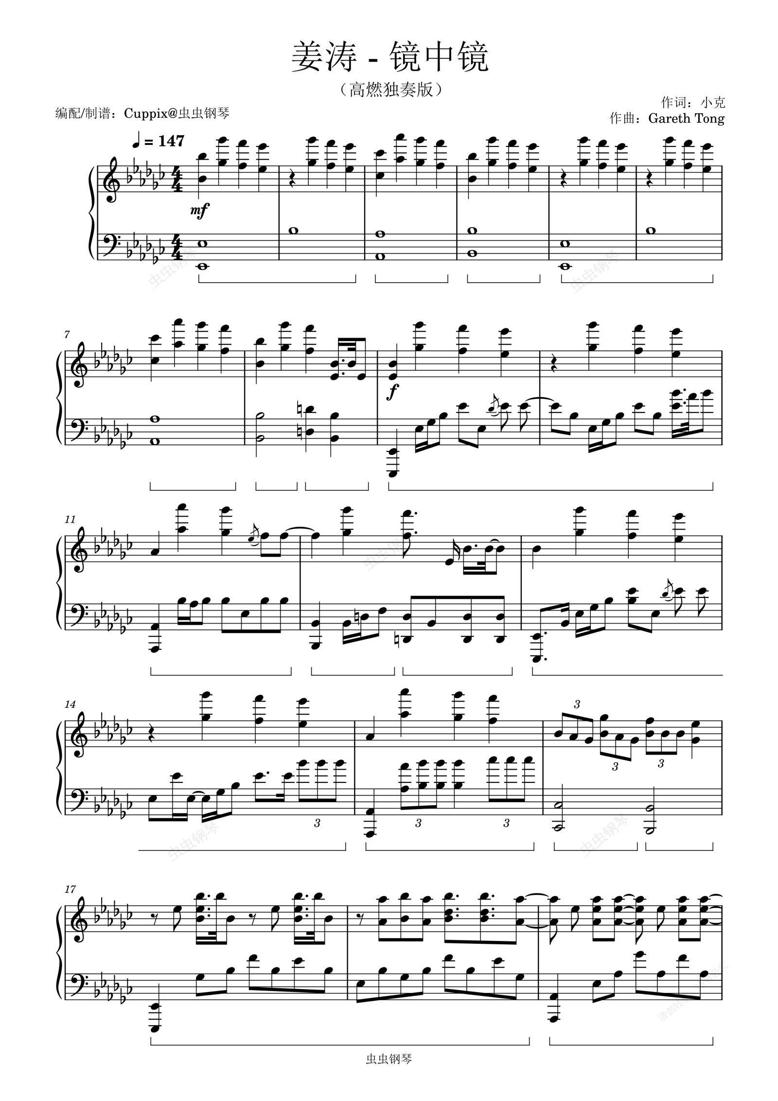 钢琴谱:姜涛《镜中镜》Cuppix改编-高燃独奏版