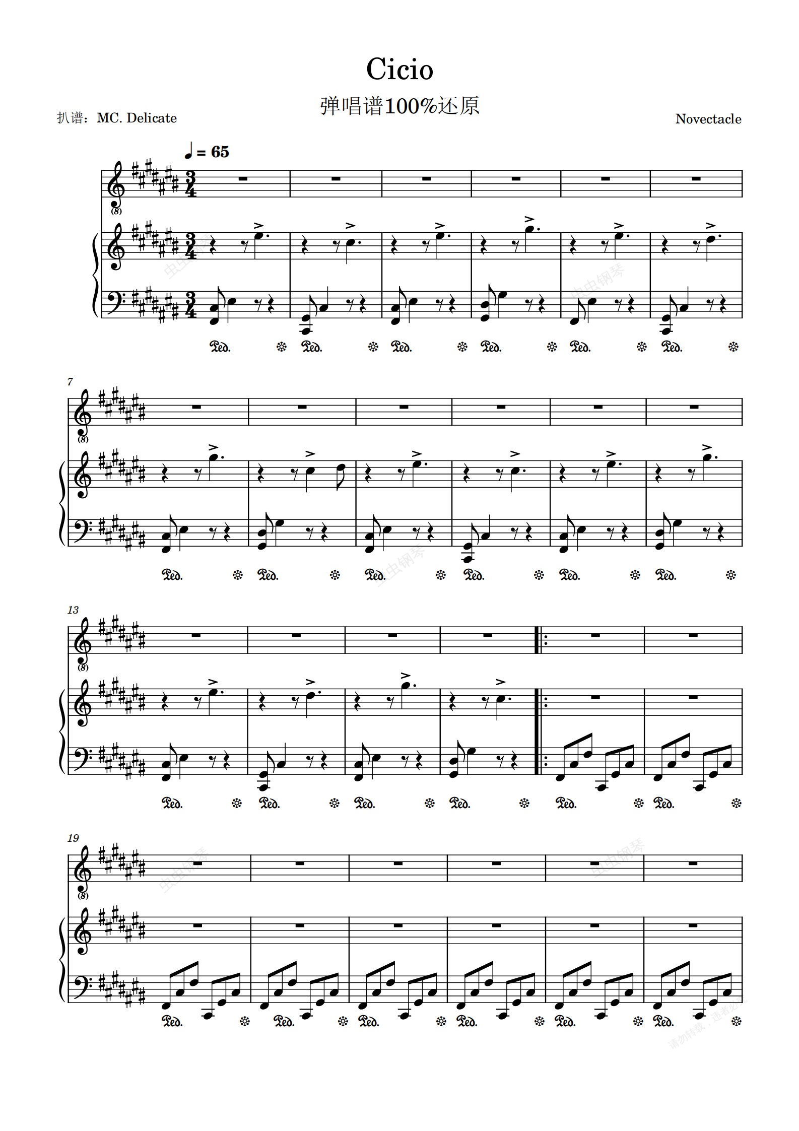 钢琴谱:Cicio钢琴弹唱谱100%还原#海市蜃楼之馆