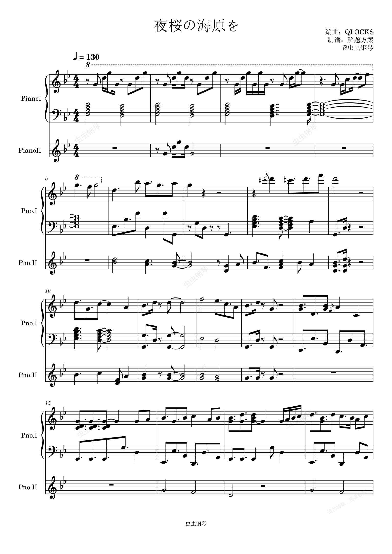 钢琴谱:【东方】夜桜の海原を - QLOCKS