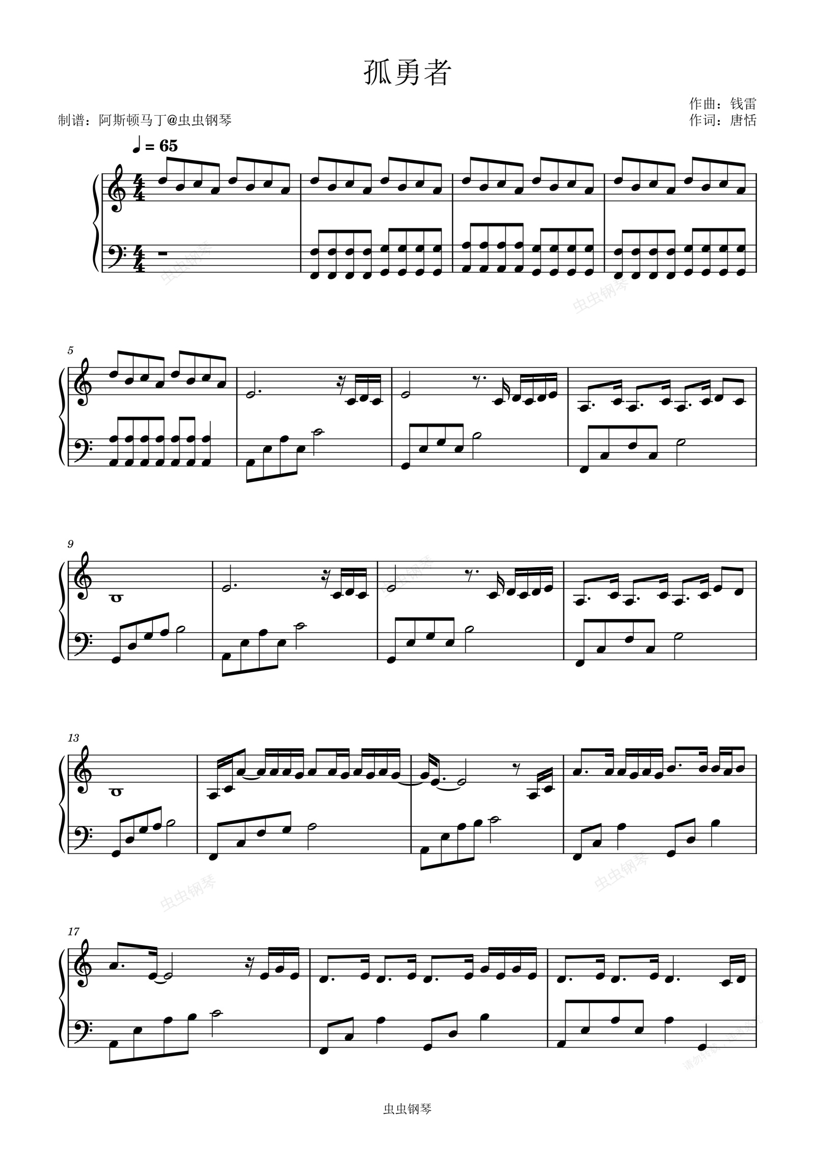 钢琴谱:《孤勇者》英雄联盟 双城之战 - 初学简单版 849难度