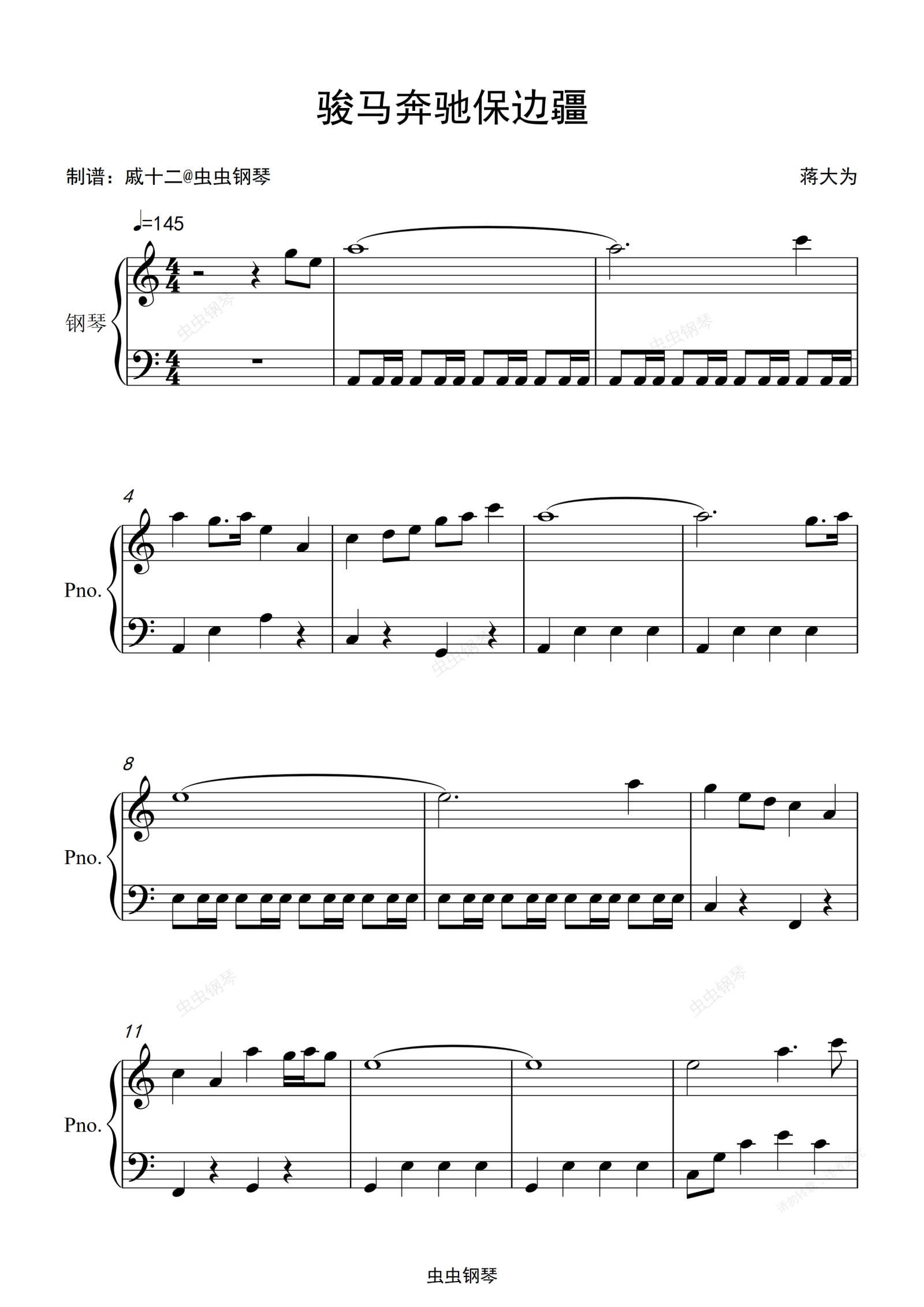 钢琴谱:骏马奔驰保边疆-C调简单版