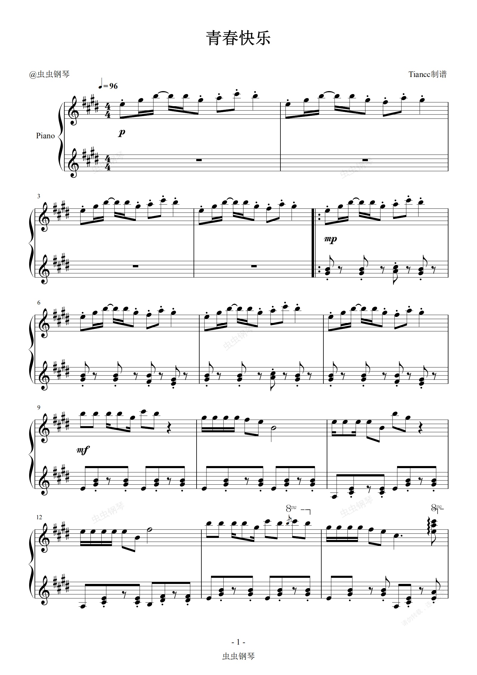 钢琴谱:《青春快乐》我开着车,你唱着歌,前面就要爬山坡!