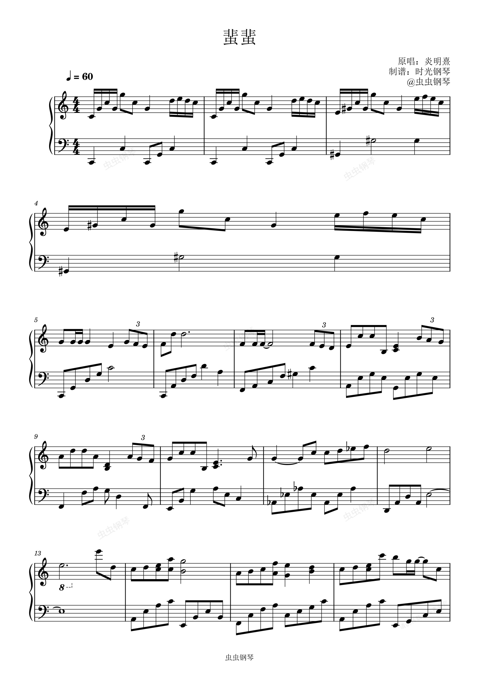 钢琴谱:炎明熹-蜚蜚 完美c调易上手