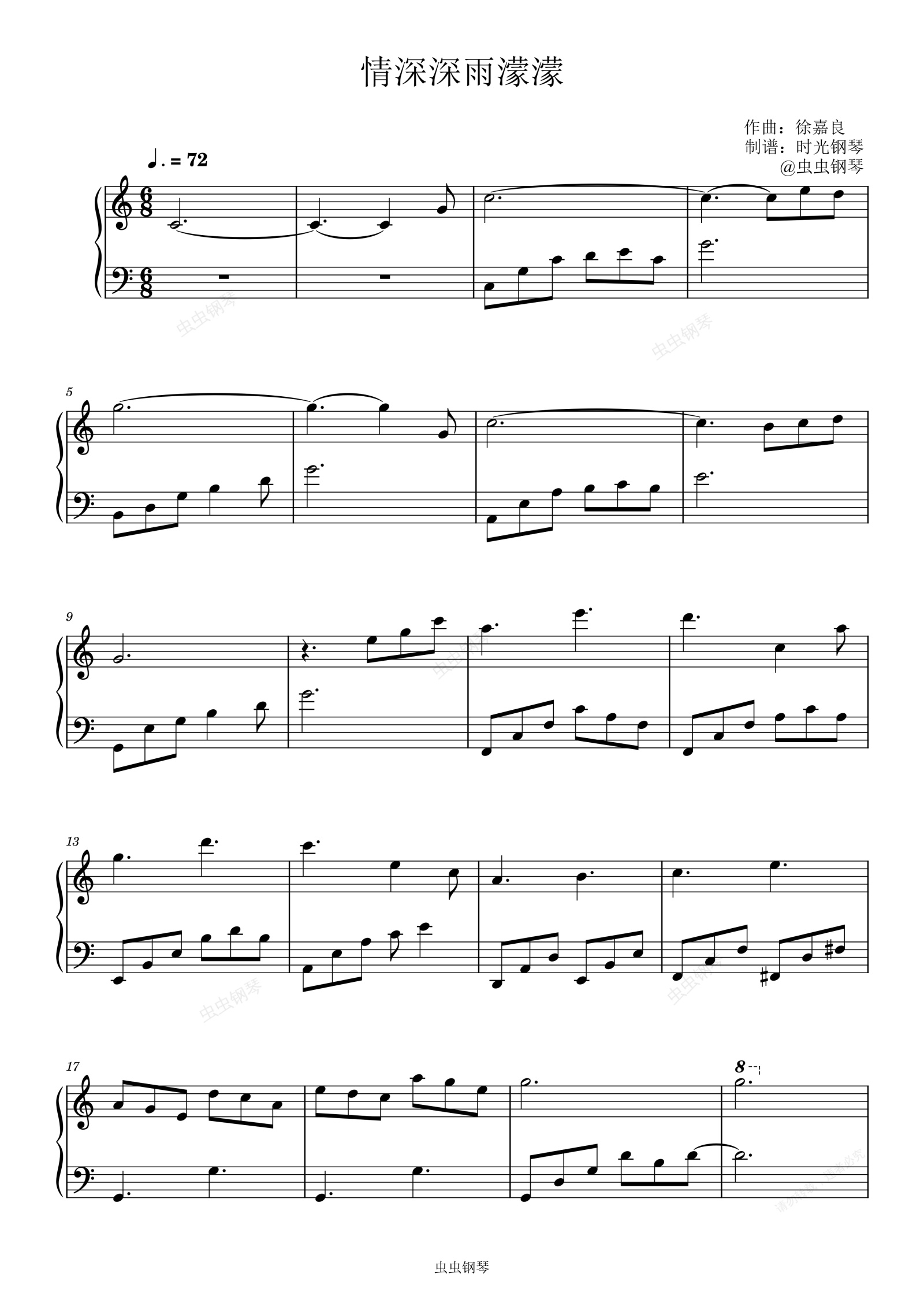 钢琴谱:杨胖雨-情深深雨濛濛 完美c调