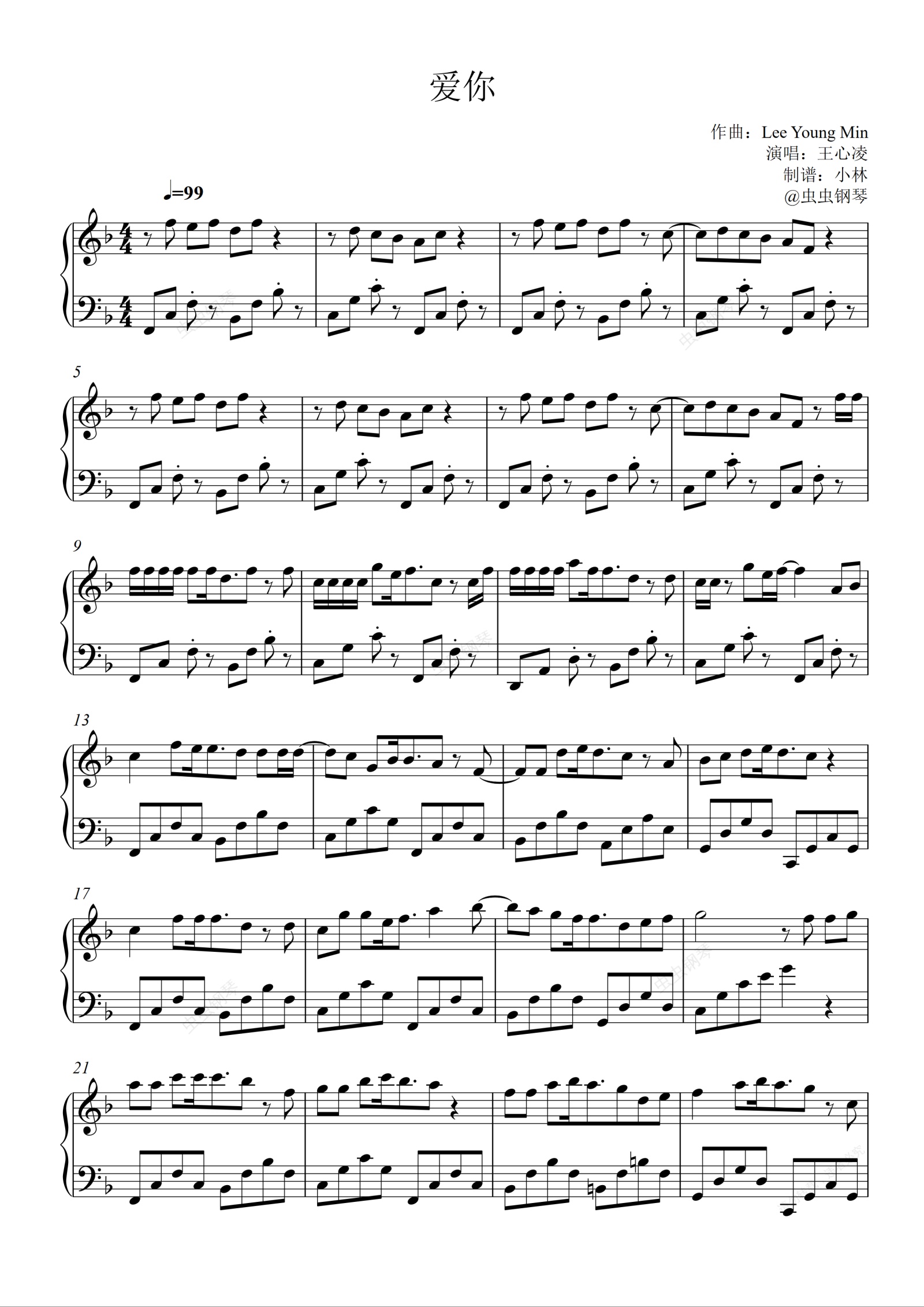 钢琴谱:《爱你》王心凌简单弹唱谱(舞台表演版本)