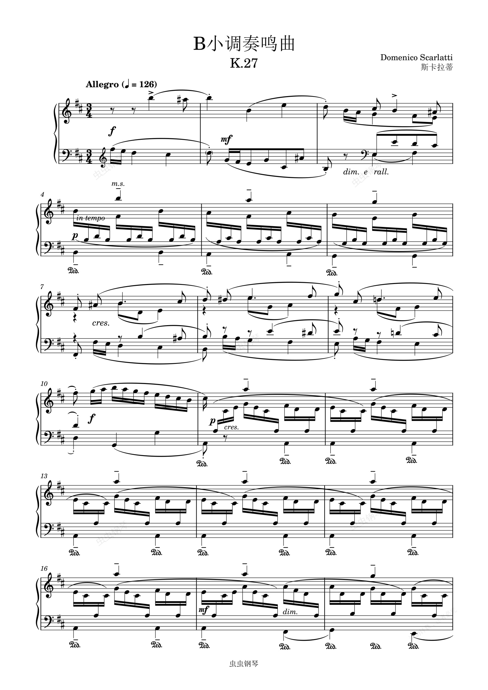 钢琴谱:B小调奏鸣曲 K.27 斯卡拉蒂