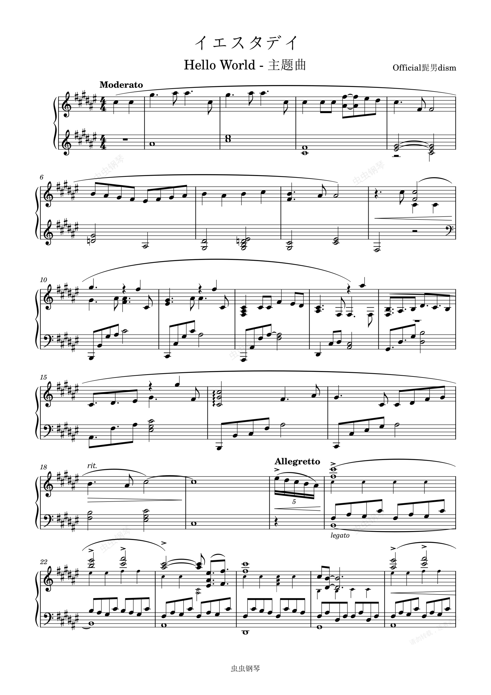 钢琴谱:イエスタデイ Hello World - 主题曲