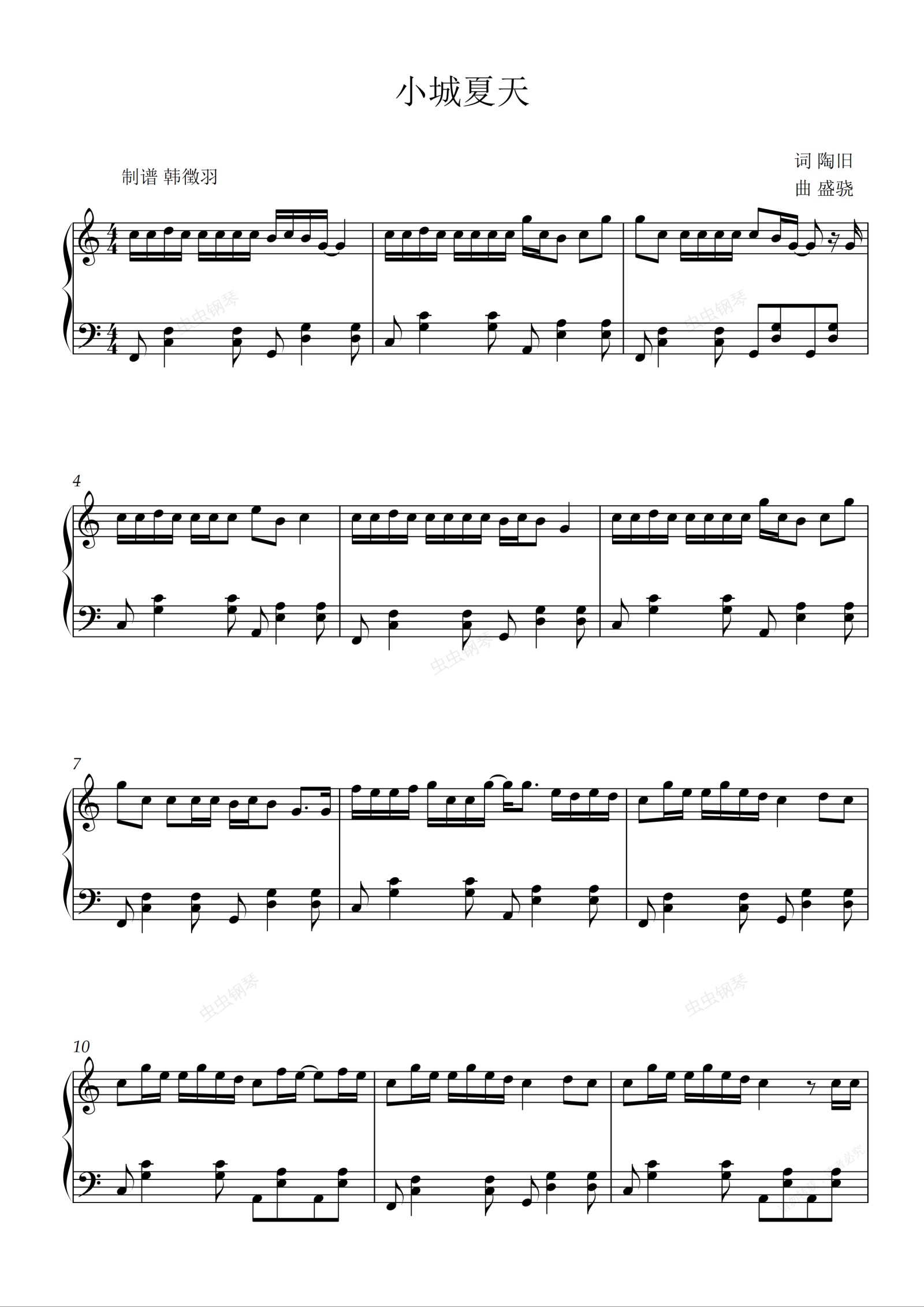 钢琴谱:小城夏天 LBI利比 简易版