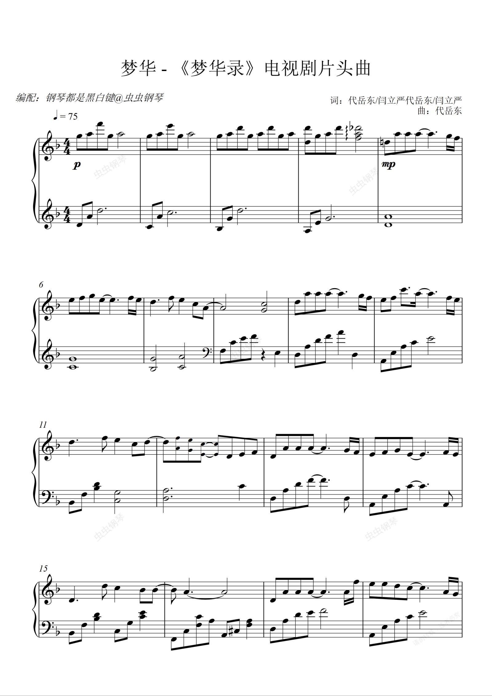 钢琴谱:梦华 - 《梦华录》电视剧片头曲 【精品钢琴独奏】