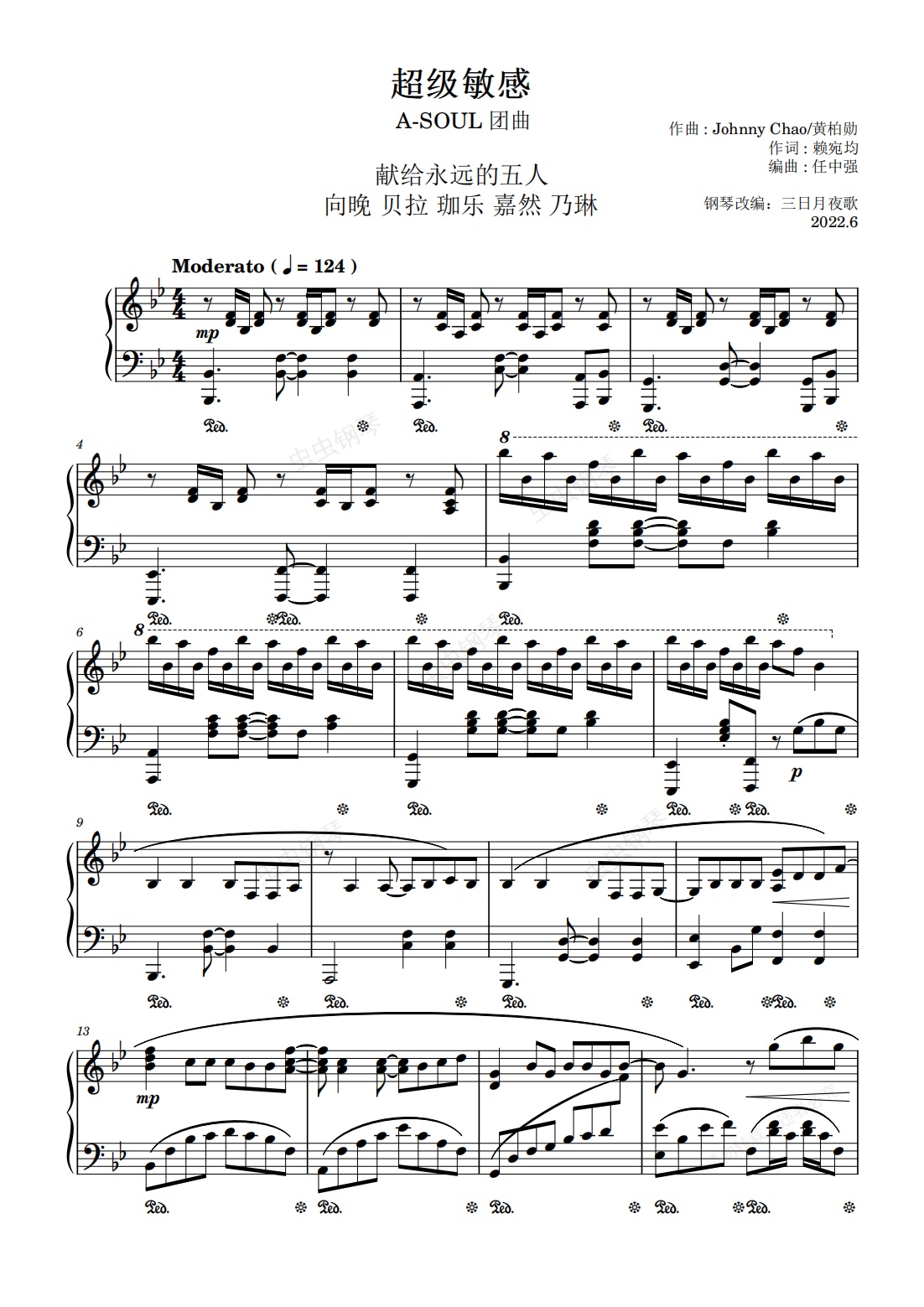 钢琴谱:【A-SOUL/钢琴】超级敏感