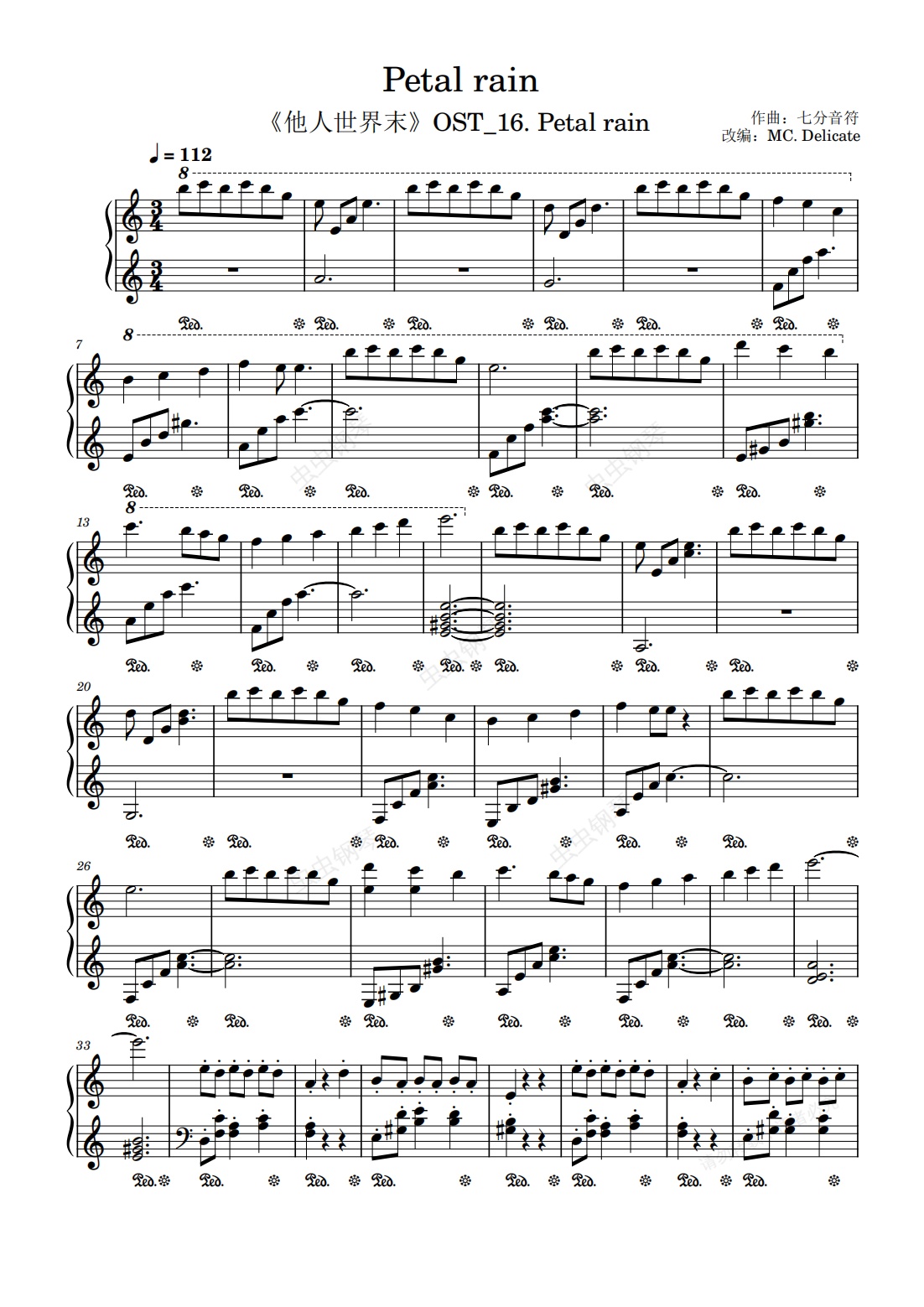 钢琴谱:Petal rain自制改编钢琴谱#他人世界末