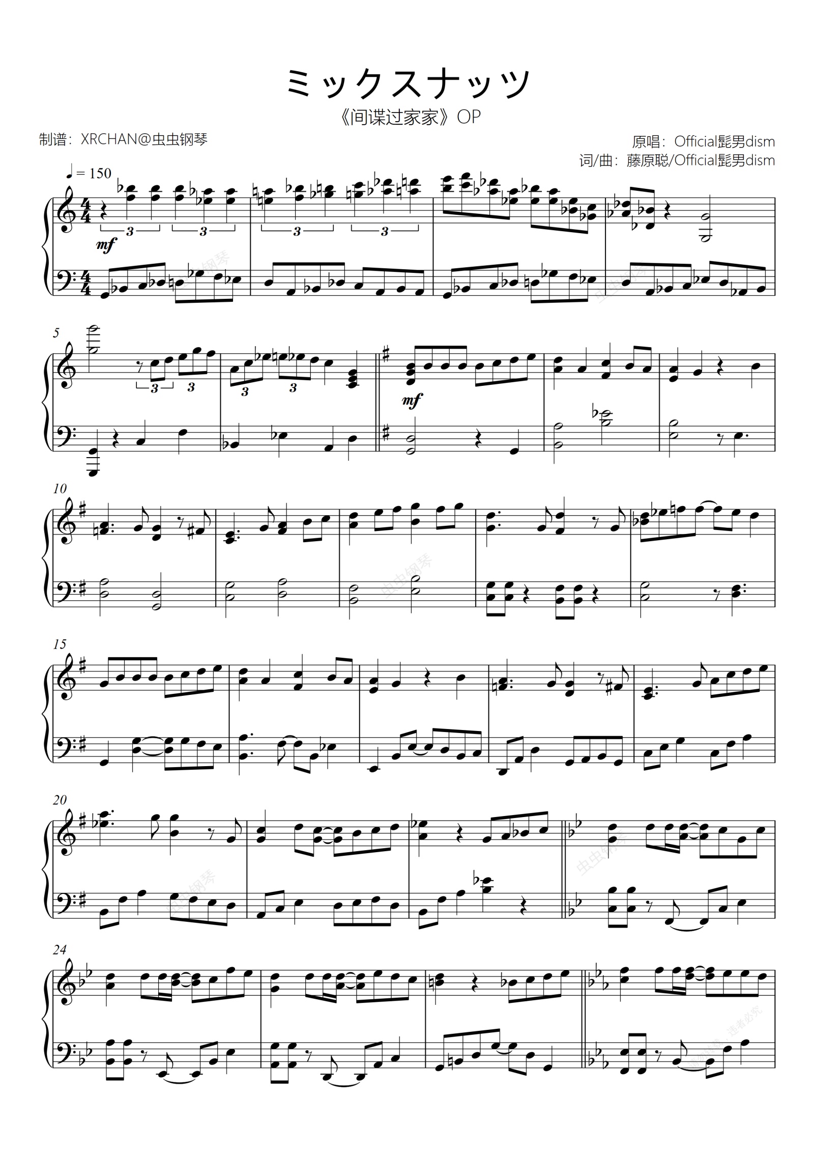 钢琴谱:ミックスナッツ《间谍过家家》OP 初级版 G调