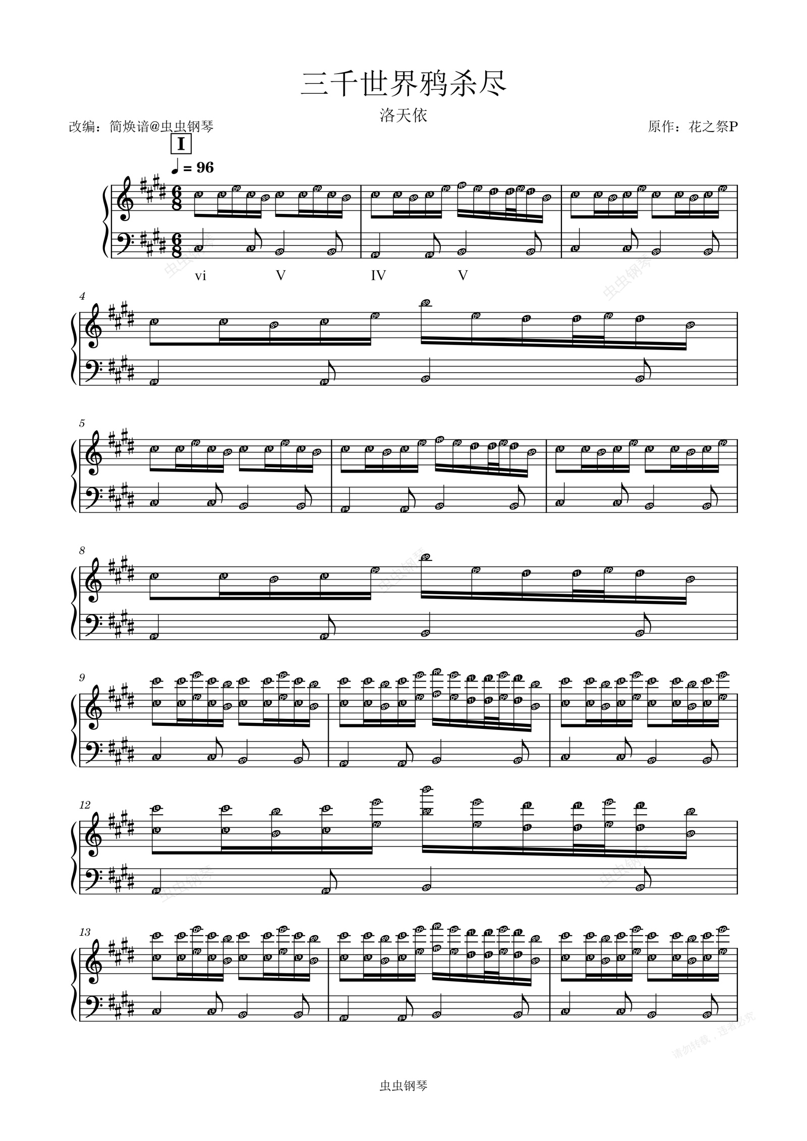 钢琴谱:三千世界鸦杀尽 花之祭P 洛天依