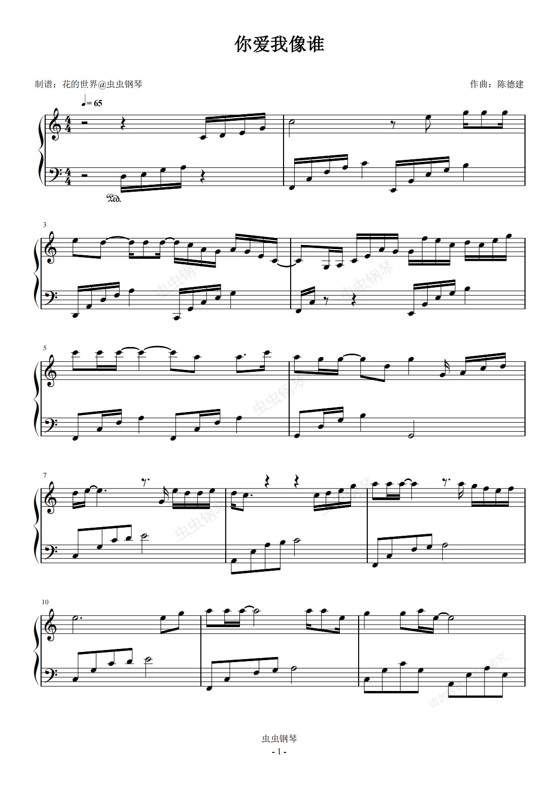 钢琴谱:你爱我像谁 C调简易版 张卫健 流行经典