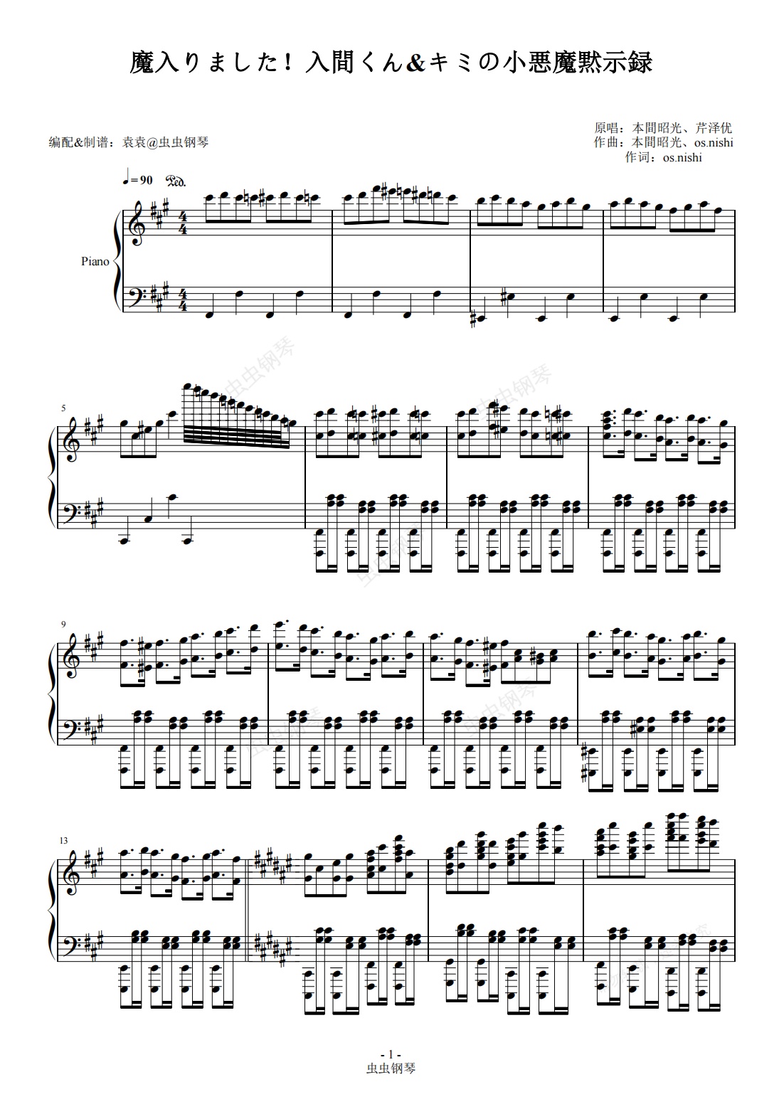 钢琴谱:入间同学入魔了插曲 魔入りました!入間くん & キミの小悪魔黙示録