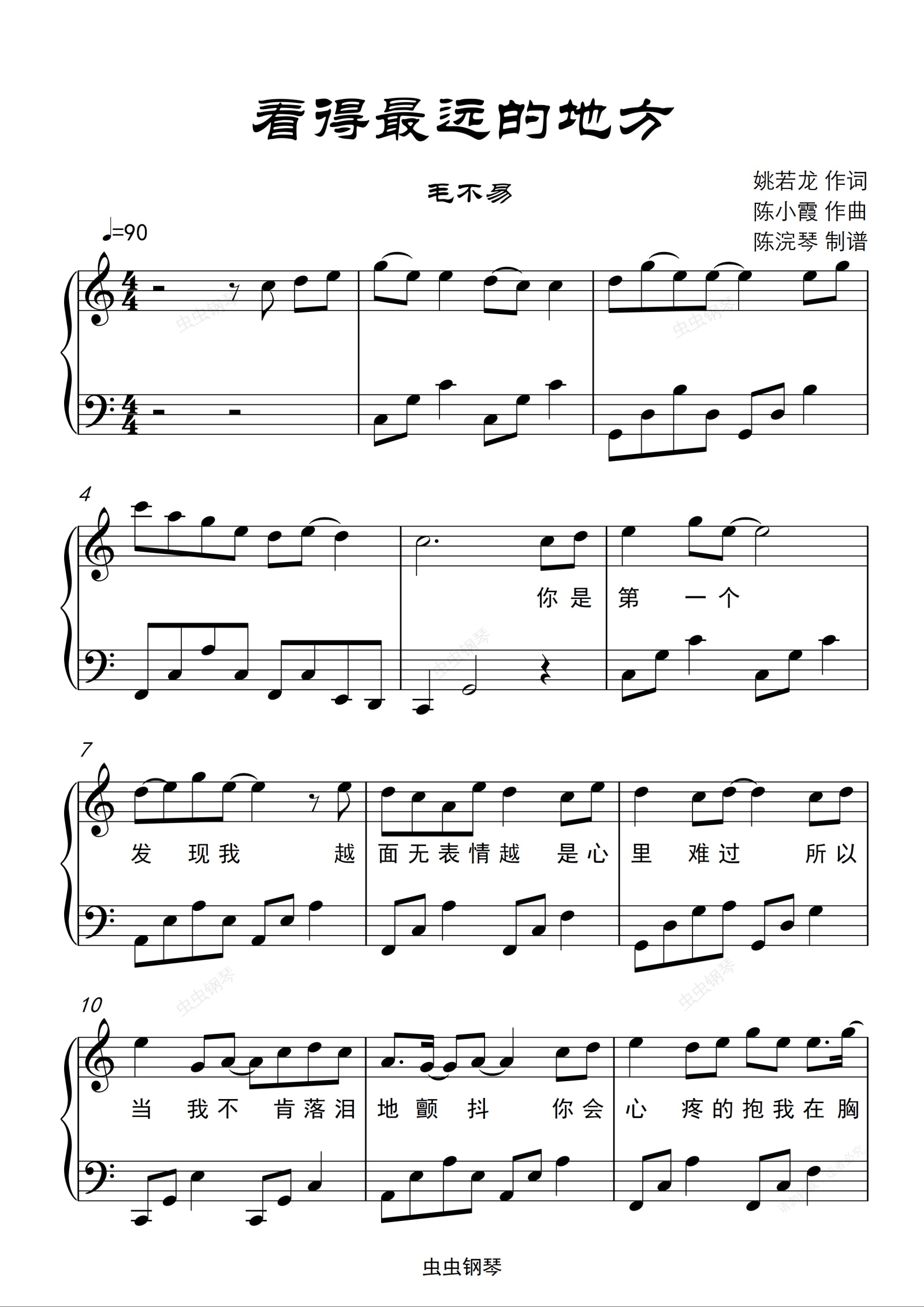 钢琴谱:看得最远的地方钢琴谱_C调五线谱_毛不易