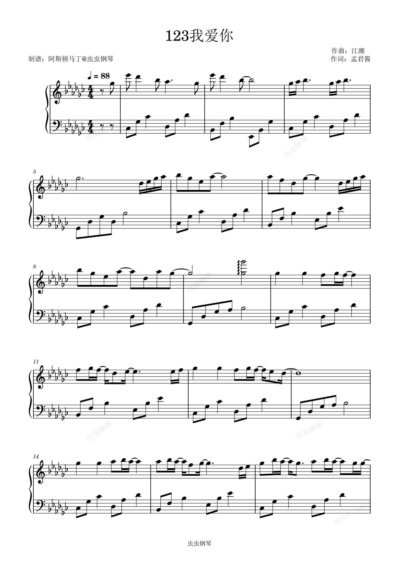 钢琴谱:123我爱你 - 新乐尘符【初学简易版】